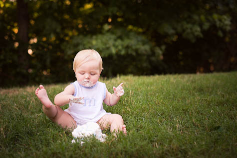 4. Cake smashes are always great - and you never know what kind of reaction the baby is going to have, which makes it even more fun! Sometimes the photos where the baby is less than thrilled are the best ones. Place the cake in front of the baby and just document what happens. Try to shoot from different angles - get down on the baby's level, shoot from above, and zoom in on the details for a few. I always have the parents bring a vanilla cake as chocolate cake can read as dirt on camera - especially in black and white! It's also easier to wash out of those sweet smocked outfits.