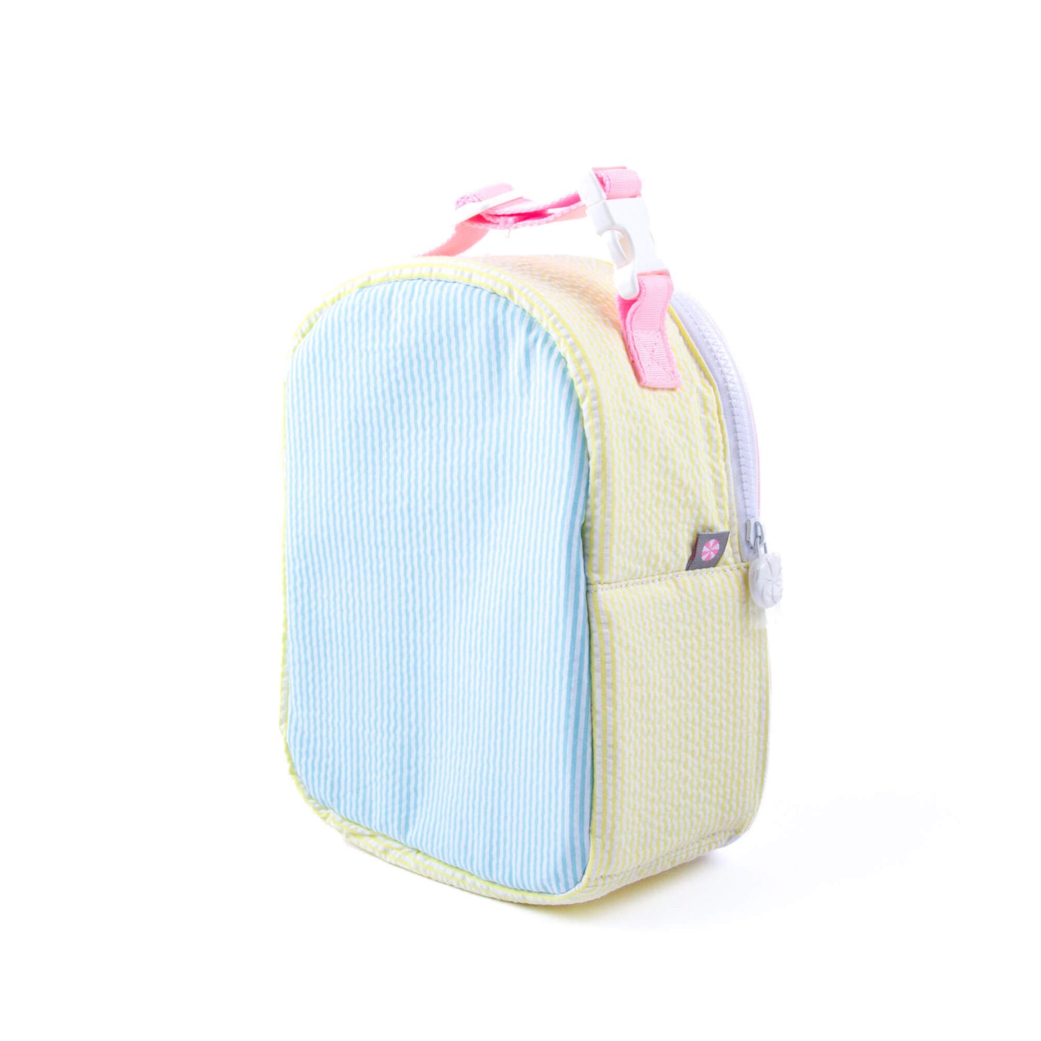 A kid's lunchbox so cute, even last night's meatloaf looks good in it. This cooler bag is also great for baby, it can carry a bottle and baby food and keep it chilled. Front pocket zips. Top strap has a ladder lock buckle to make it easy to clip on to bags or strollers.