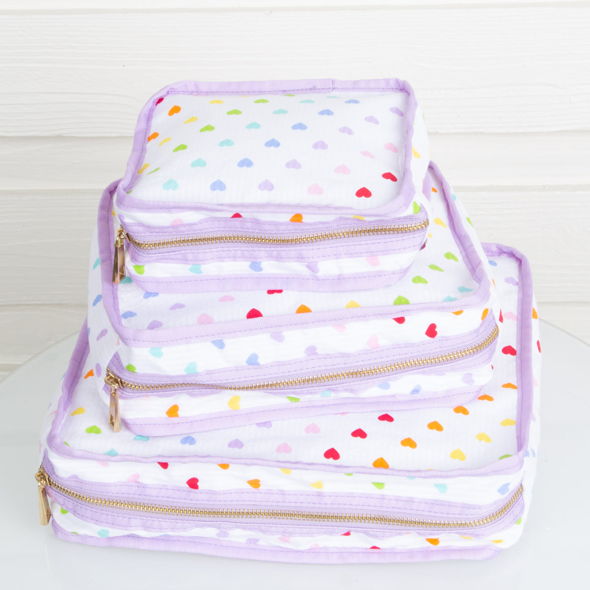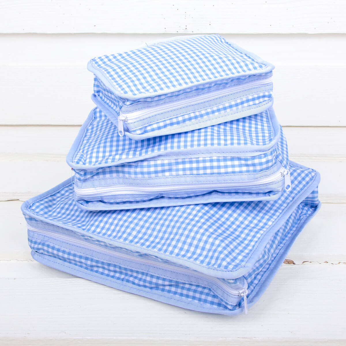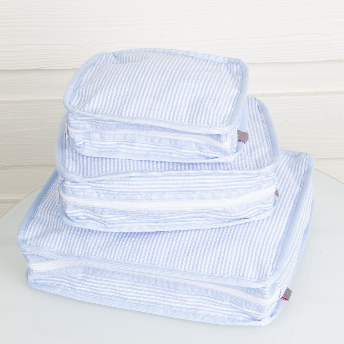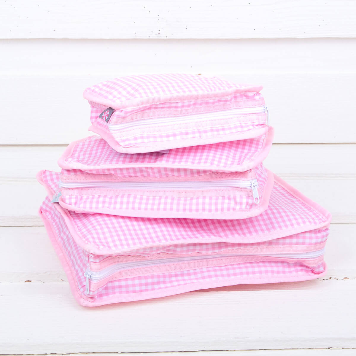 We LOVE these stacking sets! They are the ultimate organization and travel accessory. They will keep your suitcase organized for your grown up weekend away. New parents can keep diapers, wipes, and toys easily accessible in your diaper bag. They are also perfect for clothing items, makeup, brushes, etc!