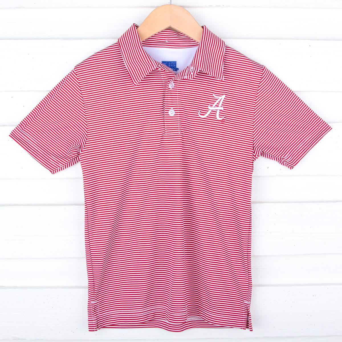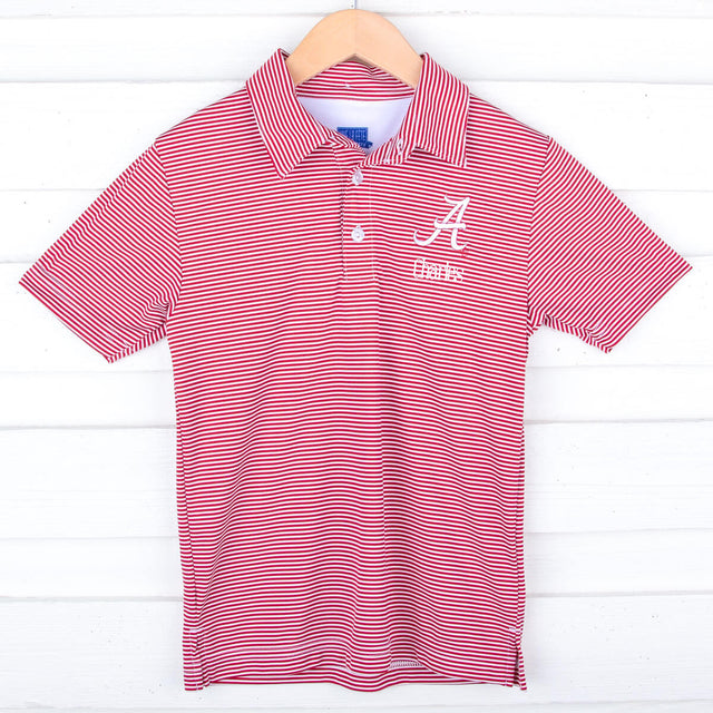 Roll Tide! Show your support for Alabama with our charming Alabama Embroidered Red Performance Polo. This performance stripe polo features the Alabama embroidered logo on the side. Add a personalized touch by including a name monogram!