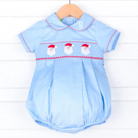 Santa Smocked Blue Corduroy Collared Bubble