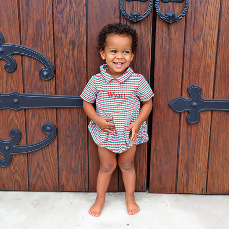 $38.99Unit price /Unavailable in this combinationJolly Christmas Smocked Green Windowpane Collared Bubble