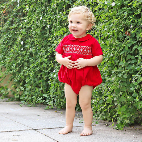 Twinkly Tree Red Smocked Boys Collared Bubble