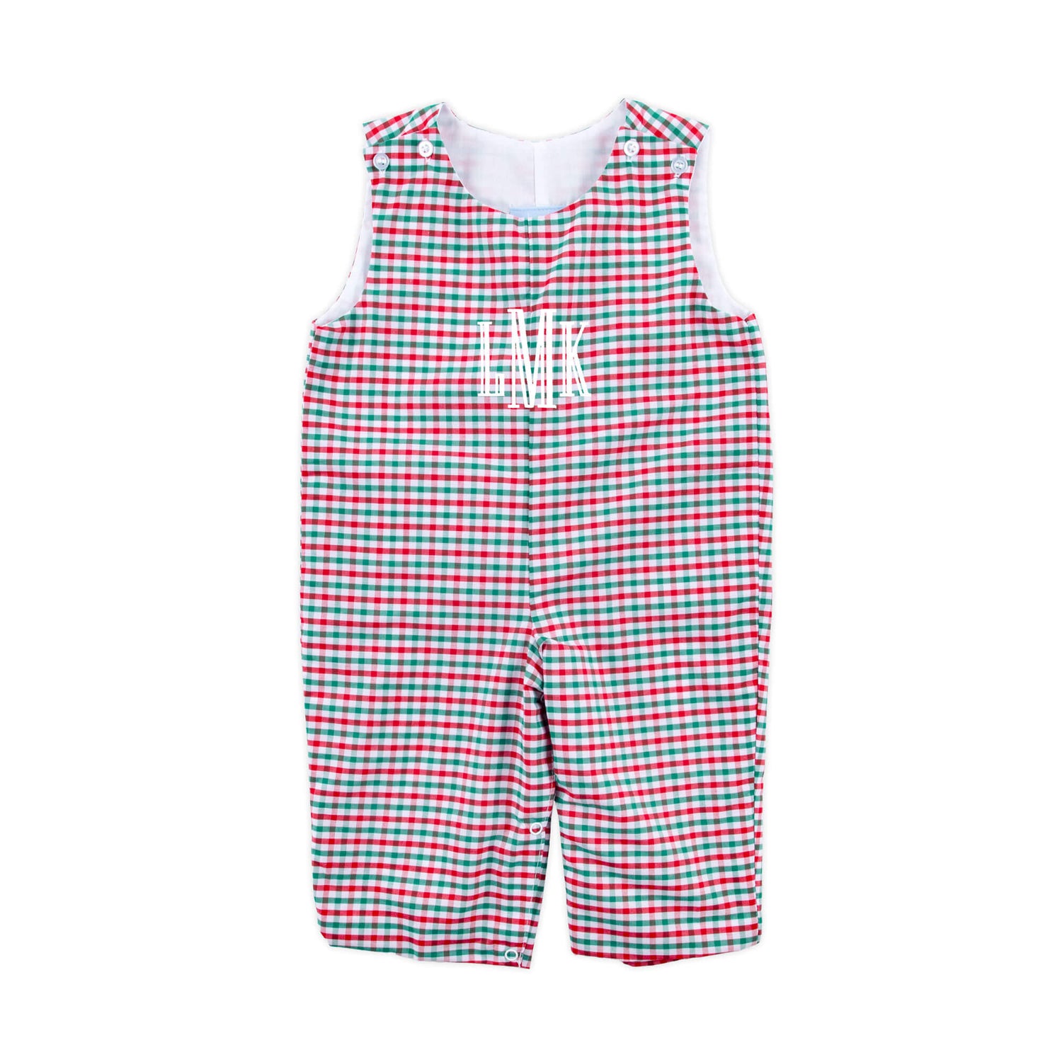 Celebrate Christmas in our Christmas Card Gingham Longall. This charming longall features green gingham with buttons and snaps in stride for easy dressing. Making it perfect for the festive season. Add a monogram to finish your Christmas look!
