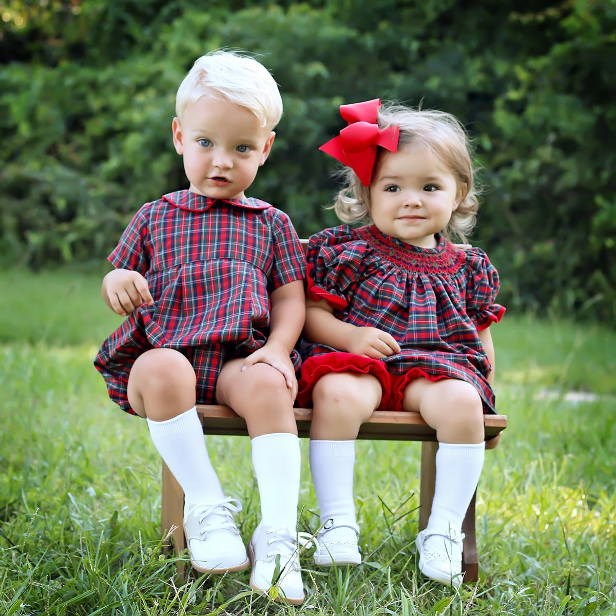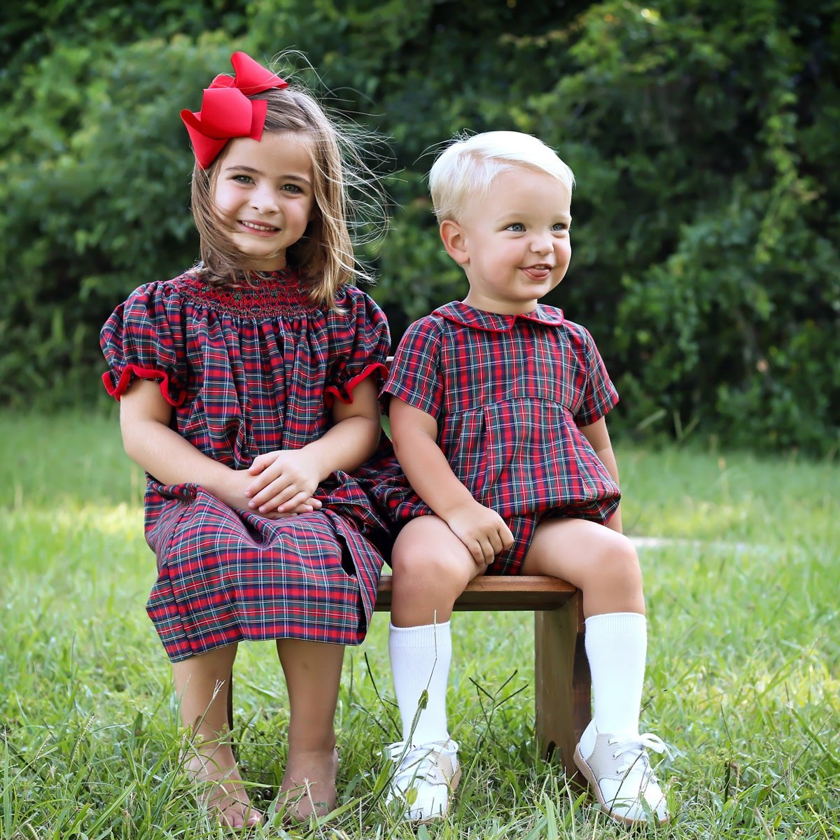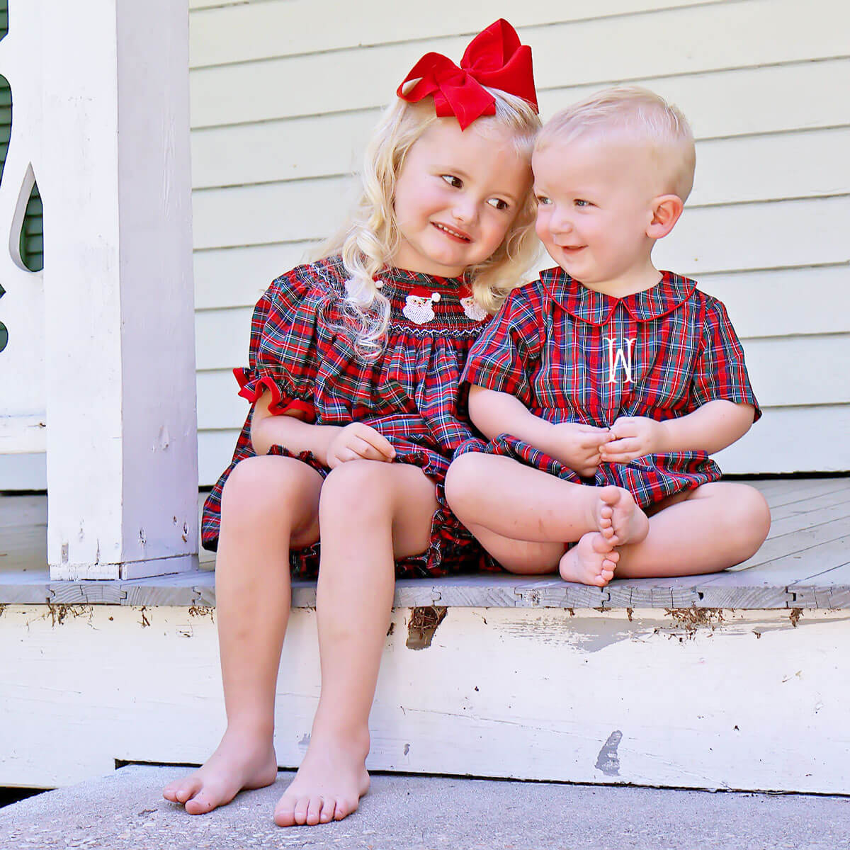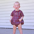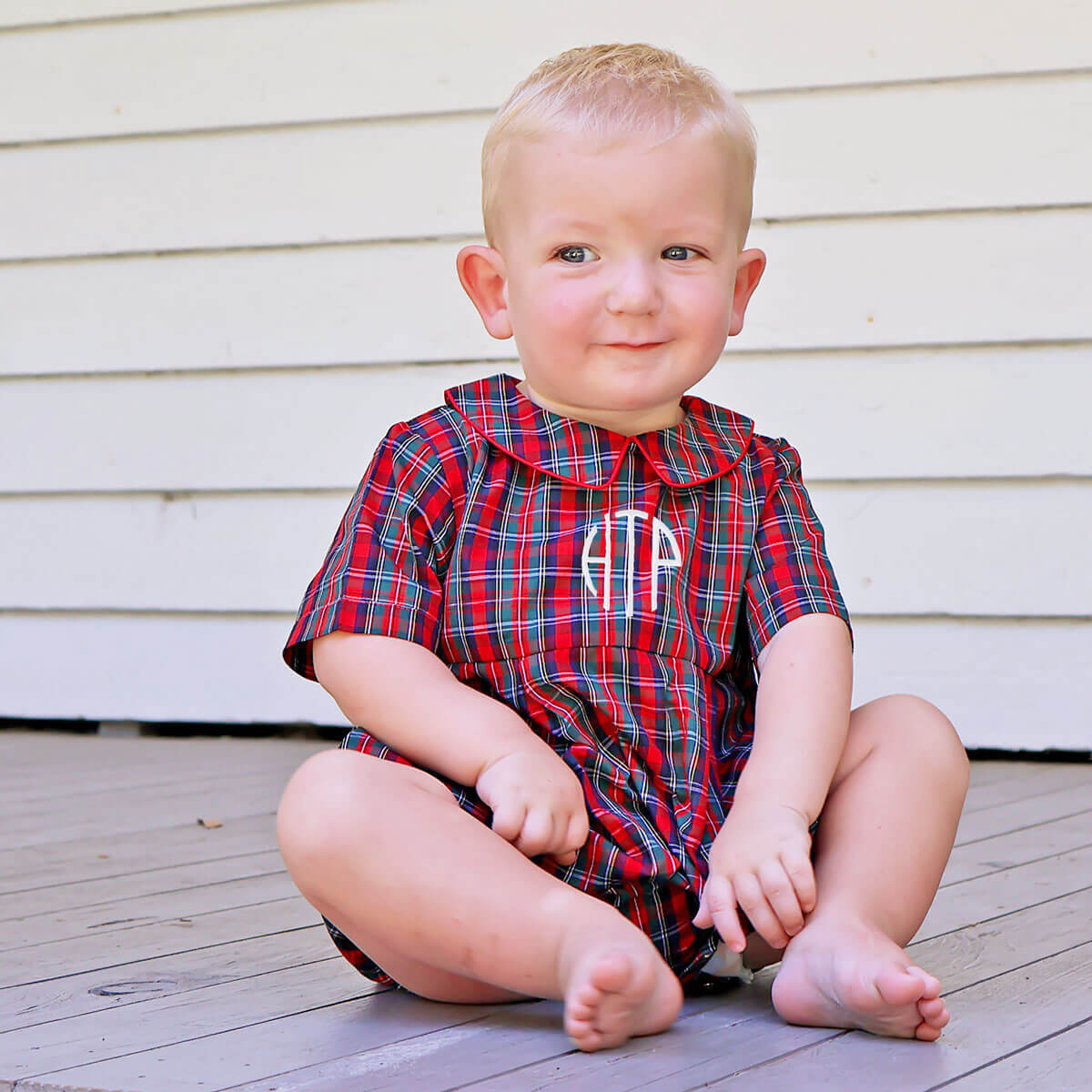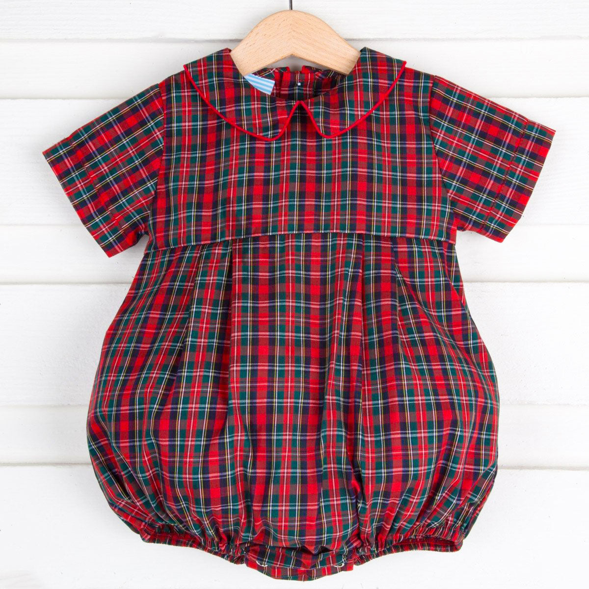 Get ready for the holidays with our Christmas Eve Plaid Collared Boy Bubble! This charming red plaid bubble features a cute collar and short sleeves, ensuring festive style. With convenient snaps in stride, it's both adorable and practical. Add a monogram for a personalized holiday touch.