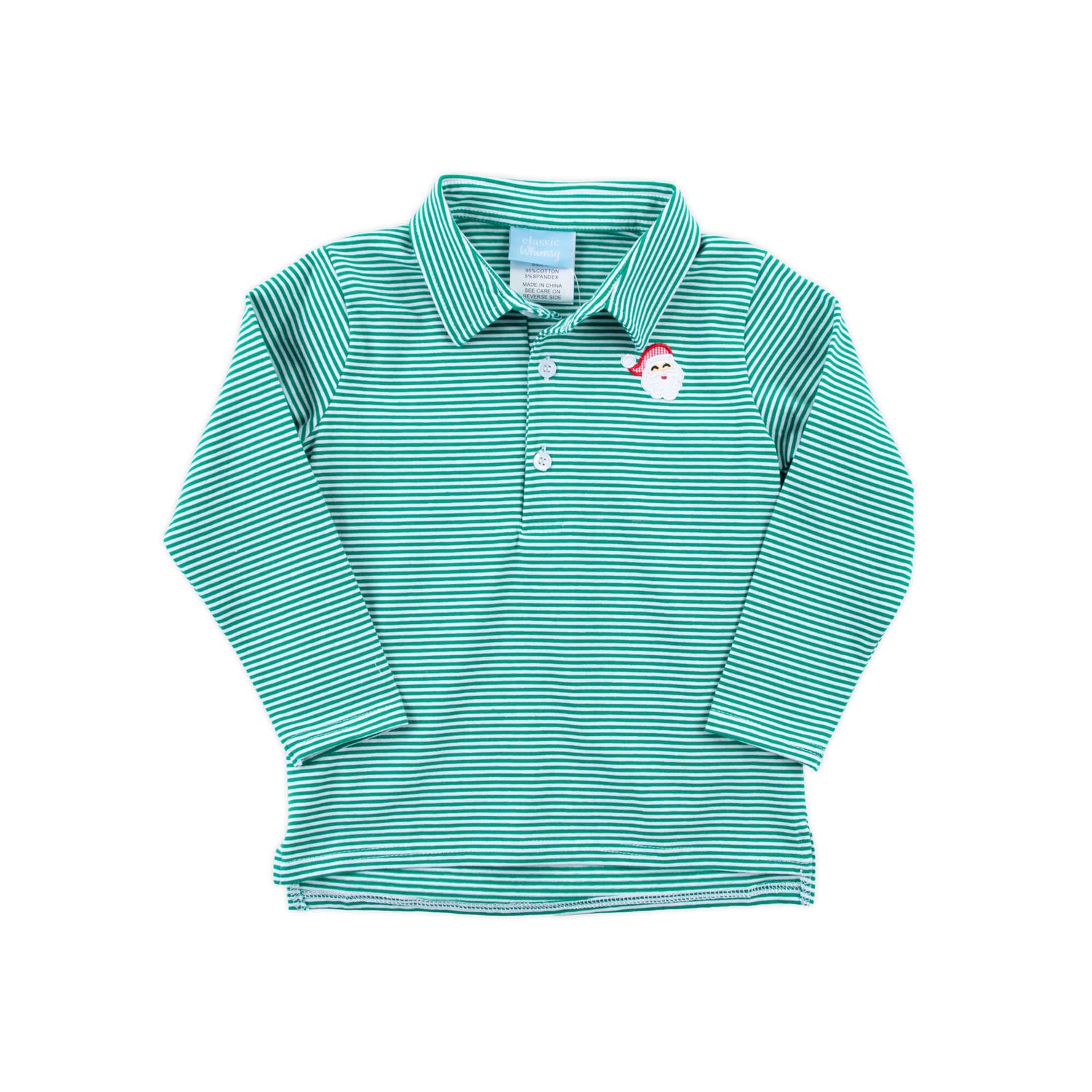Happy Santa Emerald Stripe Long Sleeve Polo