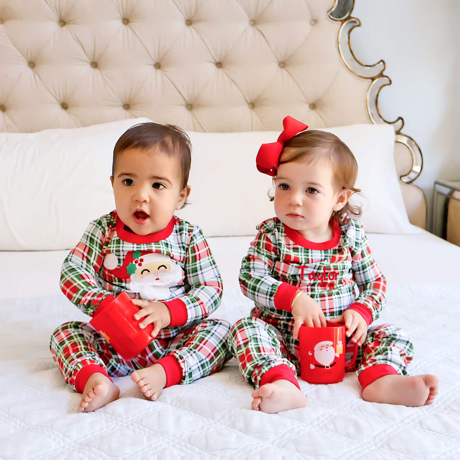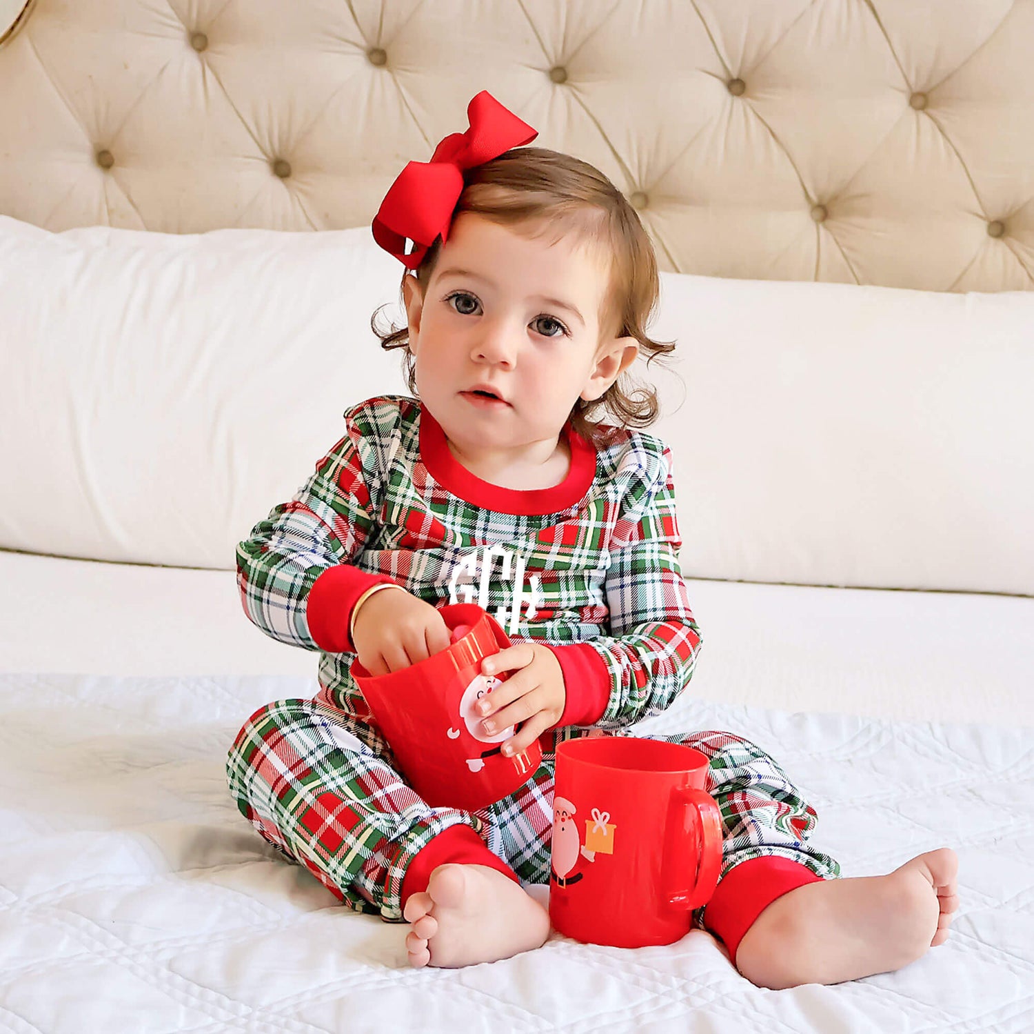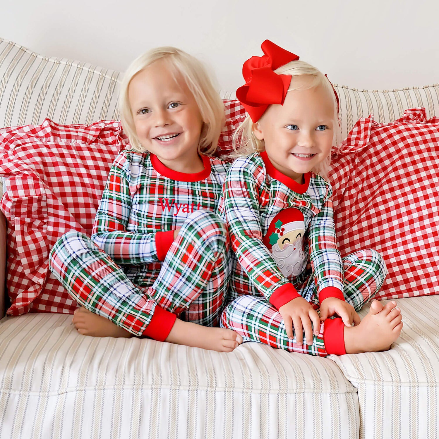 These Sinclair Plaid Pajamas will have your little ones all ready for Christmas morning! The pajama top features red plaid with red ribbing, making them perfect for the coziest holiday of the year. The set includes matching pajama bottoms. Add a monogram to personalize your Christmas look!