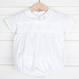 White Cross Smocked Collared Boy Bubble