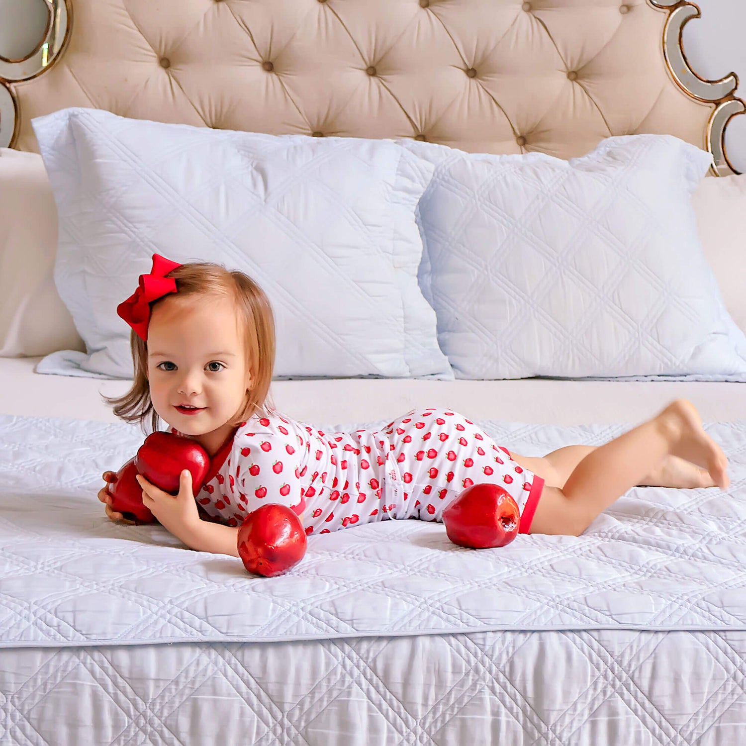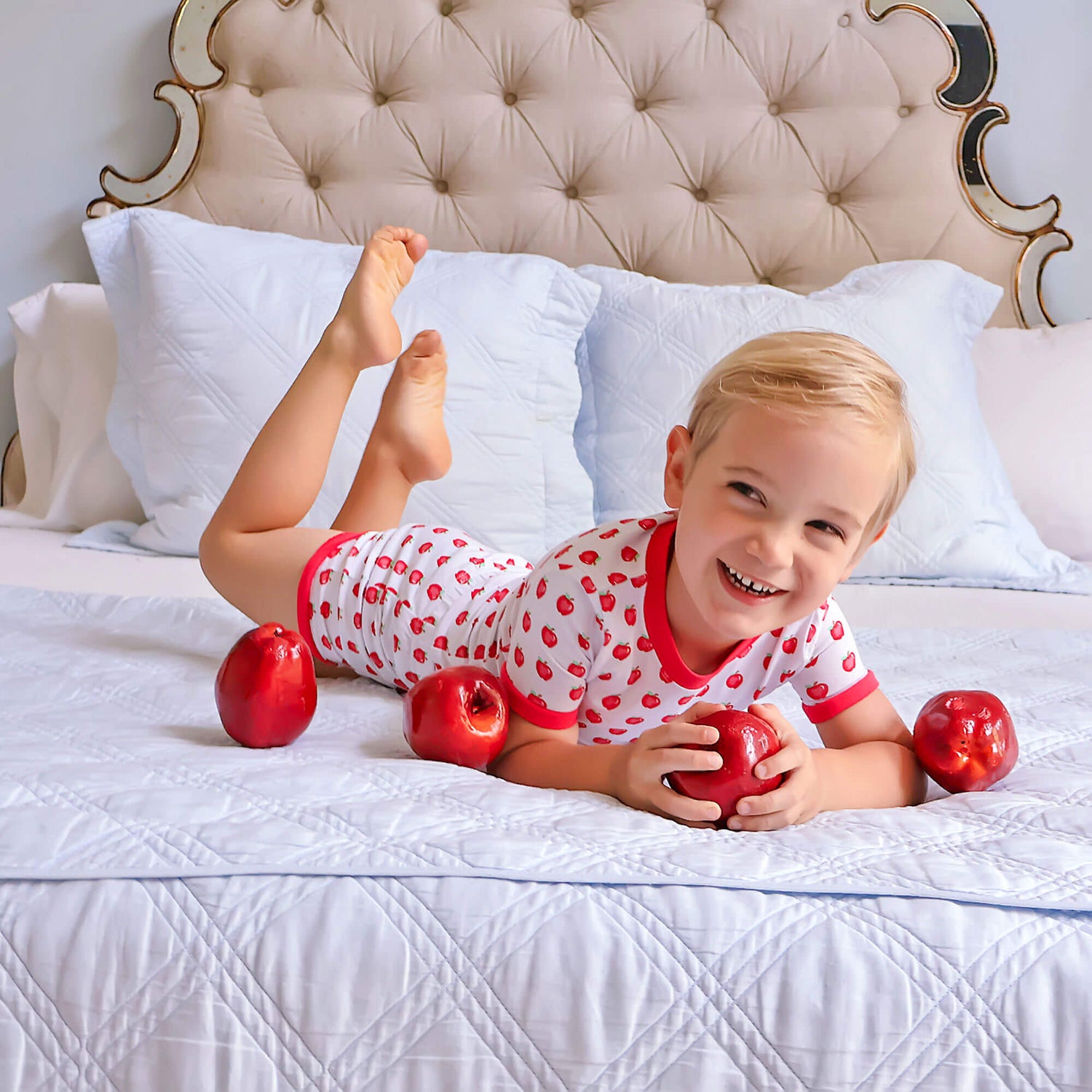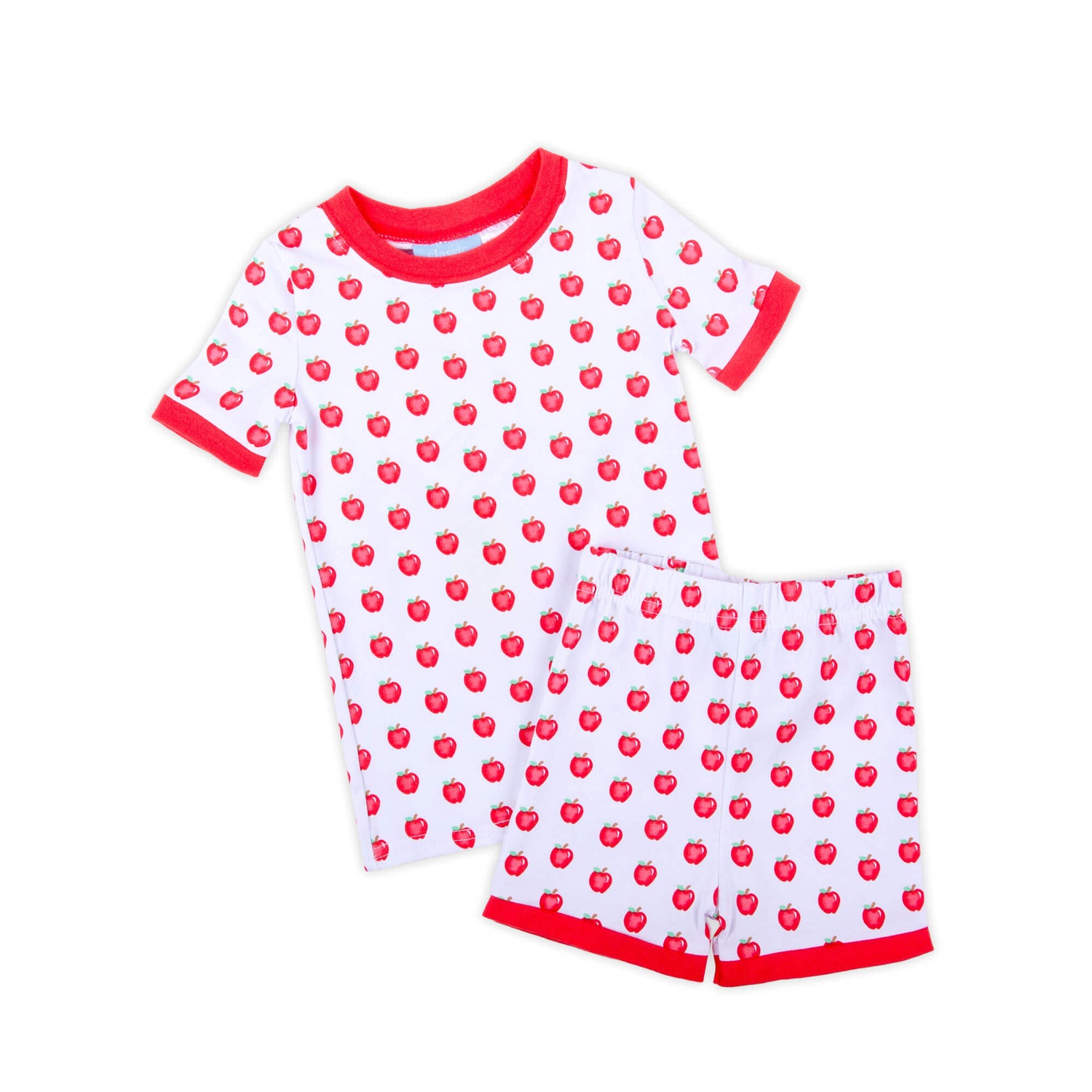 Get ready for back to school in our adorable Apple a Day Short Pajamas! Featuring the cutest apple print, this soft knit set includes a short-sleeve pajama top and matching shorts. Snuggle-ready and perfect for school nights, personalized with a monogram for an extra special touch!