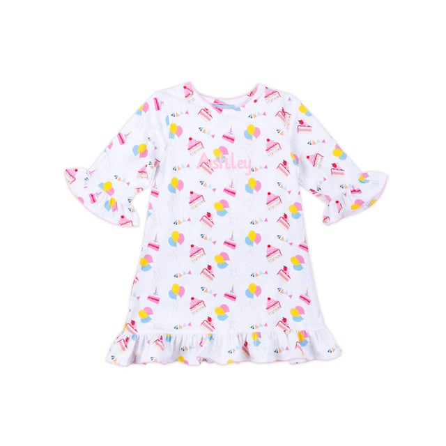 Celebrate a big birthday in our adorable Birthday Cake Long Sleeve Milly Dress! This charming knit dress features a festive birthday-themed print, playful long bishop sleeves with pink picot trim, making it the perfect choice for a fun and stylish party outfit. Add a personalized monogram to make it uniquely yours!