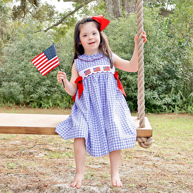 Flag Smocked Blue Plaid Beverly Dress