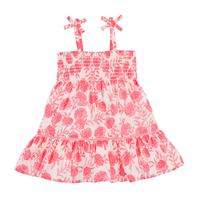 The Smocked Block Print Toddler Dress is a charming and stylish choice for your little one. Crafted from soft and breathable 100% cotton voile, this dress ensures comfort and ease of movement. It features a beautifully smocked bodice that adds a touch of elegance and texture. The eyelet trimmed hem flounce provides a playful and delicate detail, enhancing the overall design. Bow shoulder straps add a sweet and adjustable element, allowing for a perfect fit. This dress is perfect for any occasion, from casual outings to special events.
