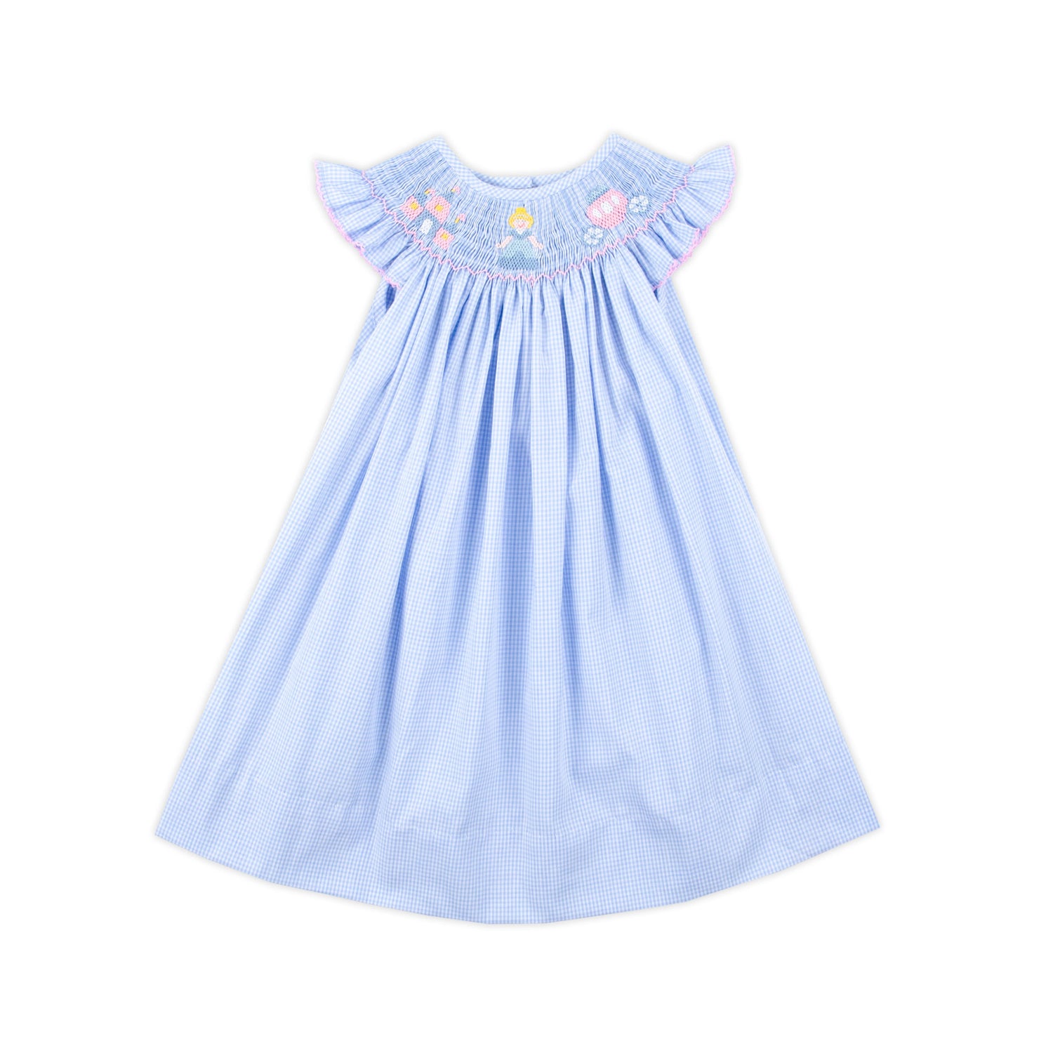 Princess Light Blue Gingham Smocked Angel Sleeve Dress