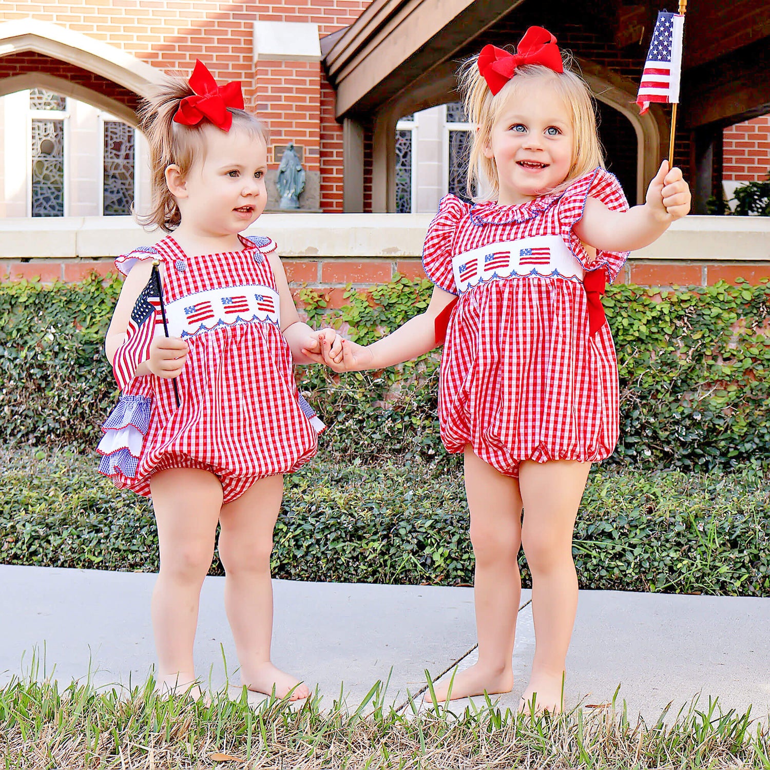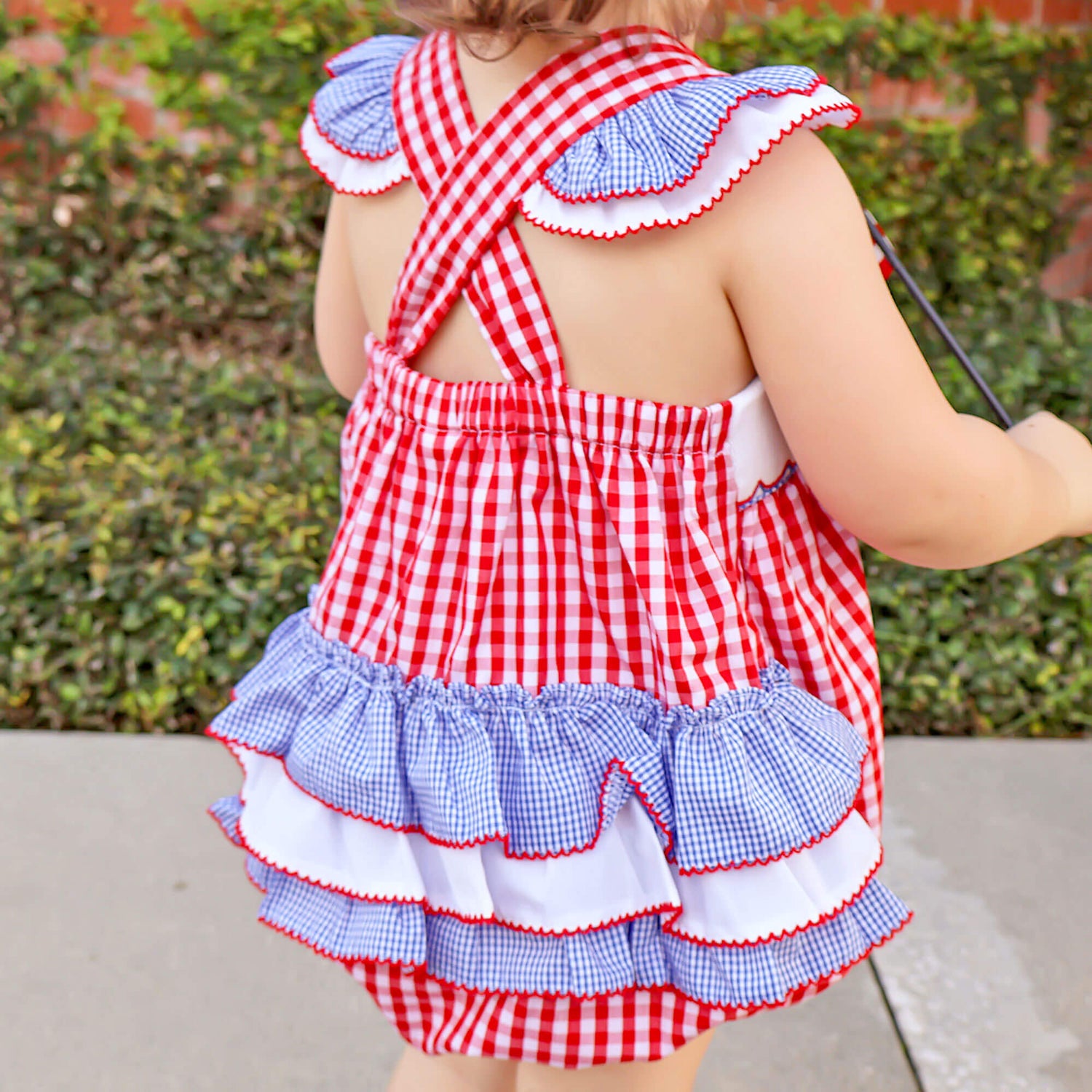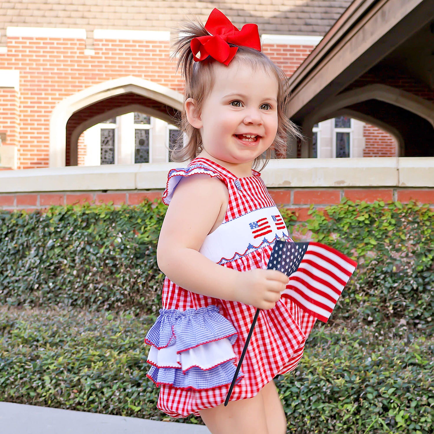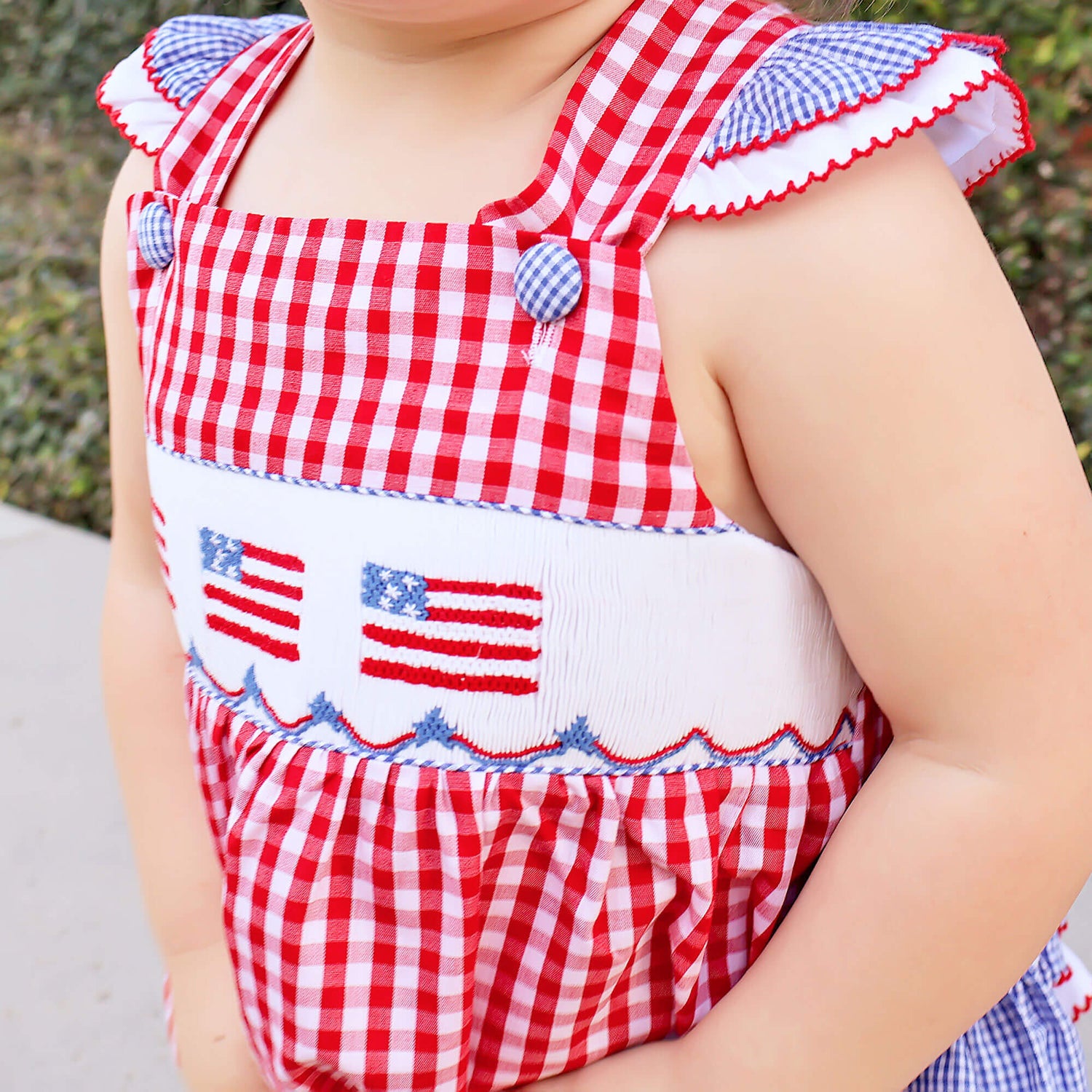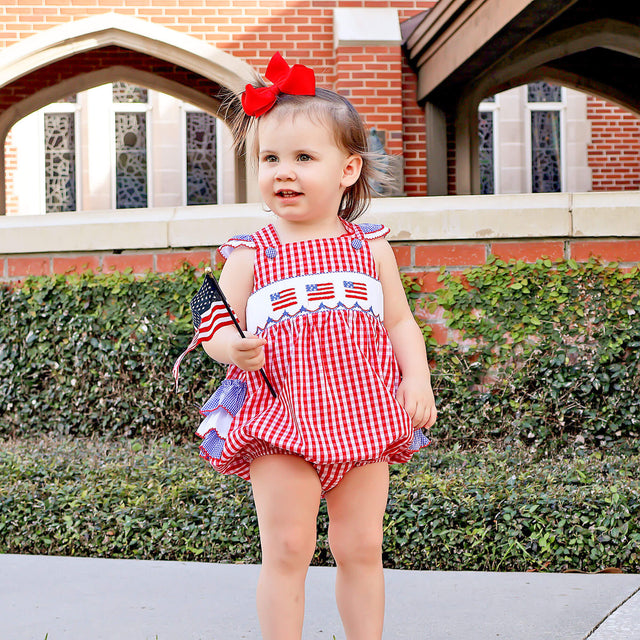 Red Check American Flag Smocked Leah Bubble