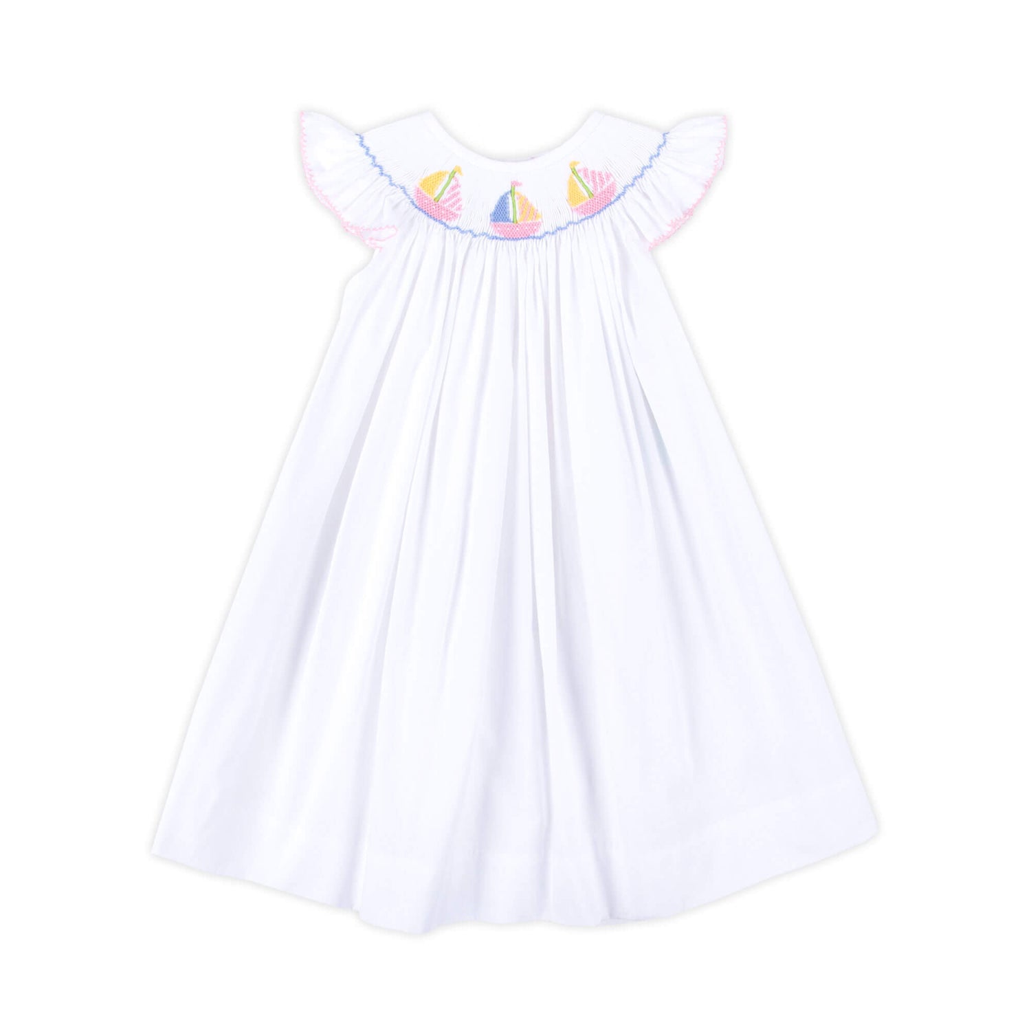 Sailboat Bliss Smocked White Angel Sleeve Dress