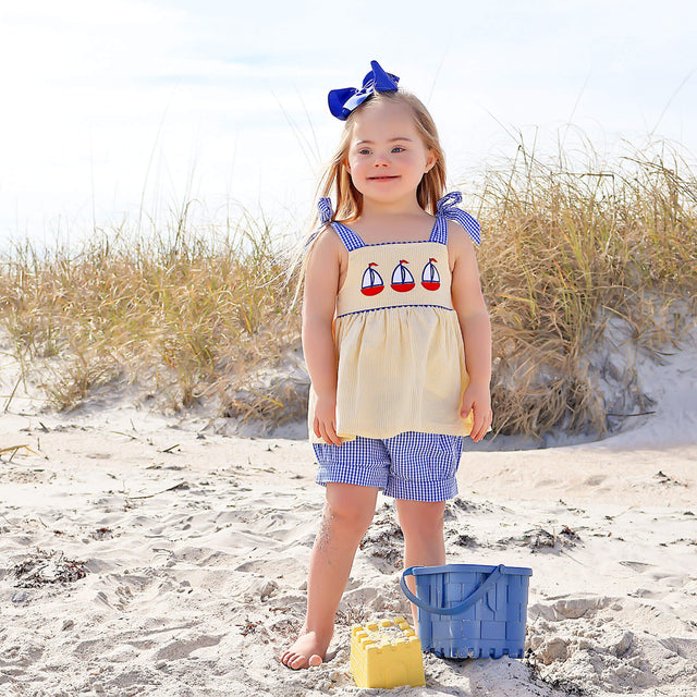 Newport Sailboat Yellow Gingham Aubree Short Set