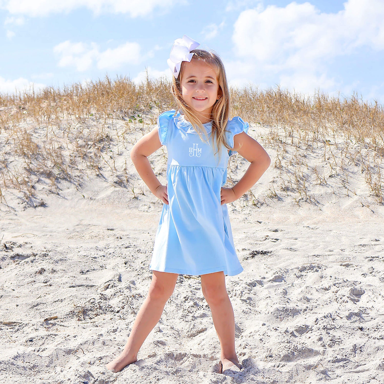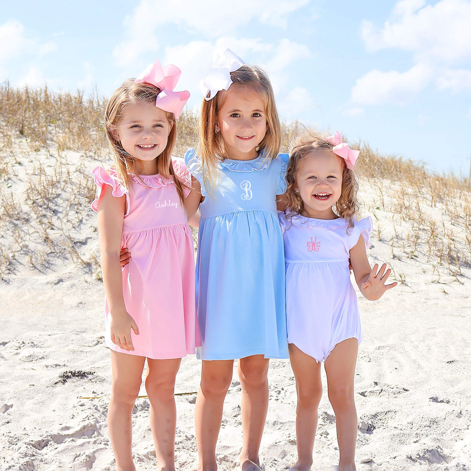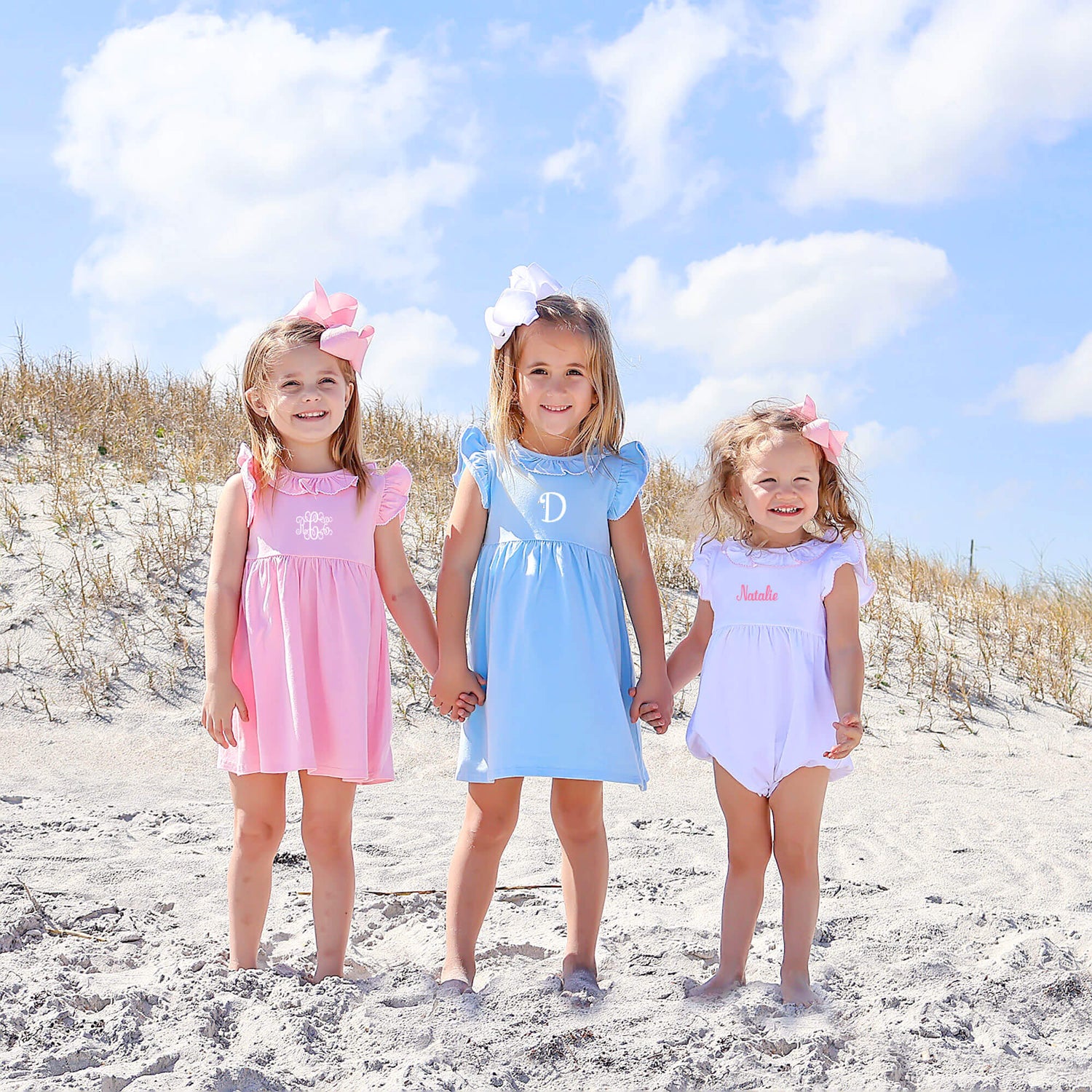 Elevate your little one's spring and summer wardrobe with our Solid Colette Dress! Perfect for special occasions and everyday moments alike, this charming dress comes in white, blue, or pink and features a sweet ruffle collar and flutter sleeves for a whimsical touch. Add a monogram to make it uniquely hers!