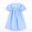White Cross Smocked Bishop Blue Pique Dress
