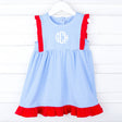 Elevate your daughter's playtime with our Josie Stripe Knit Dress! This sleeveless dress features an adorable solid ruffle trim on stripe knit fabric. Add a monogram for a personalized touch. It's the perfect outfit for fun-filled playtime under the sun.