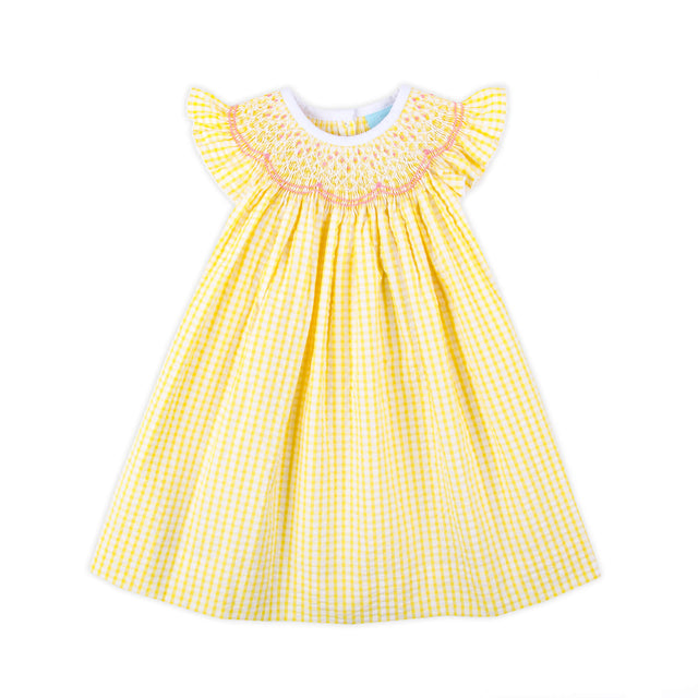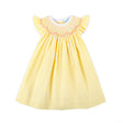 Your little sweetie will be all smiles in our Buttercup Yellow Seersucker Smocked Dress! This darling dress features geometric smocking and fluttery sleeves with white picot trim for the perfect touch of charm. Made for twirling through sunny days and sweet celebrations!