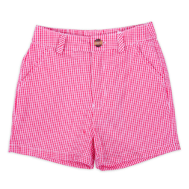 These Red Gingham Standard Shorts are a classic addition to your big boy's wardrobe for year-round wear. Versatile and stylish, they can be paired with your favorite button-down or polo shirt for a timeless look. The shorts feature slant pockets, back welt pockets, a zip fly with button closure, and belt loops. Perfect for school, church, play, or a collegiate look.