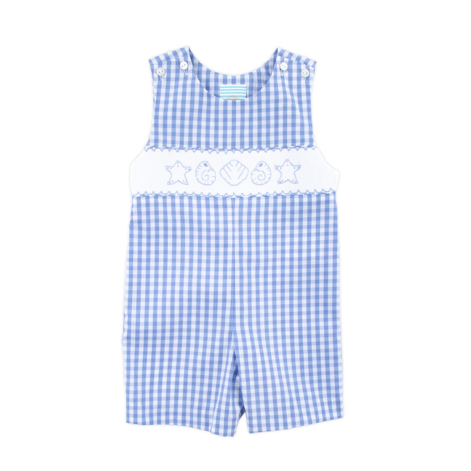 Seashell Smocked Blue Gingham Jon Jon