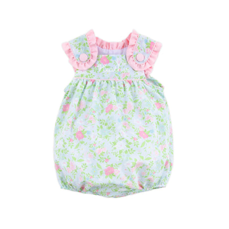 Blue Summer Floral Smocked Collared Bubble