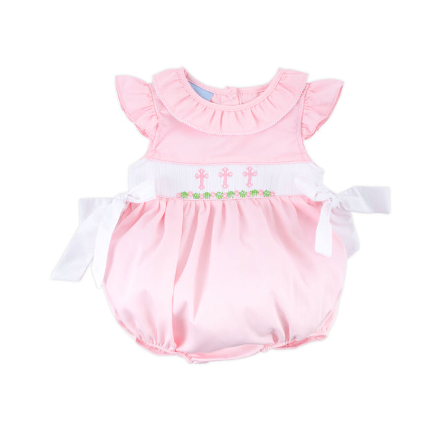 Pink Cross and Vine Smocked Beverly Bubble
