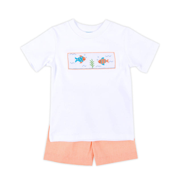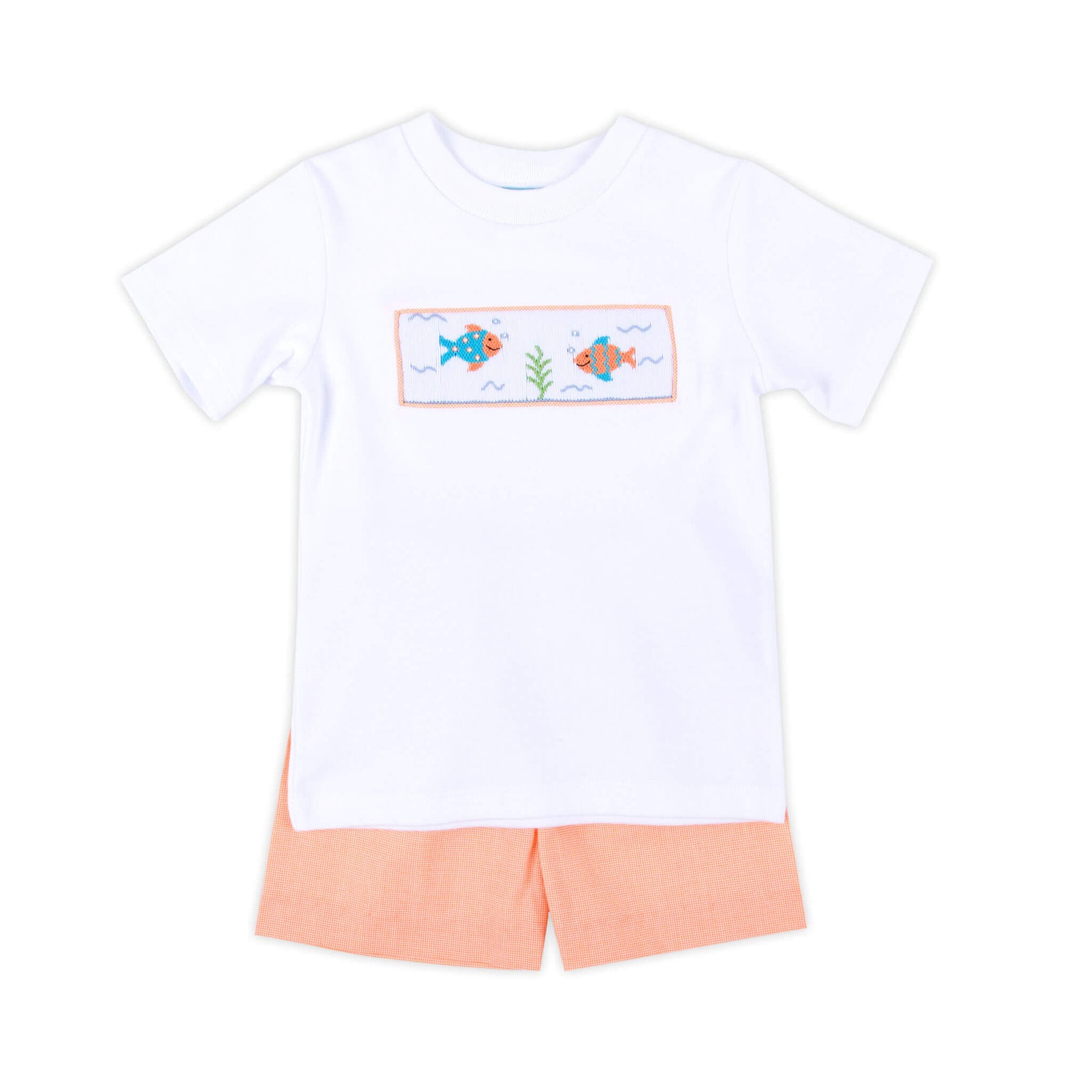Little Fish Orange Micro Gingham Smocked Short Set