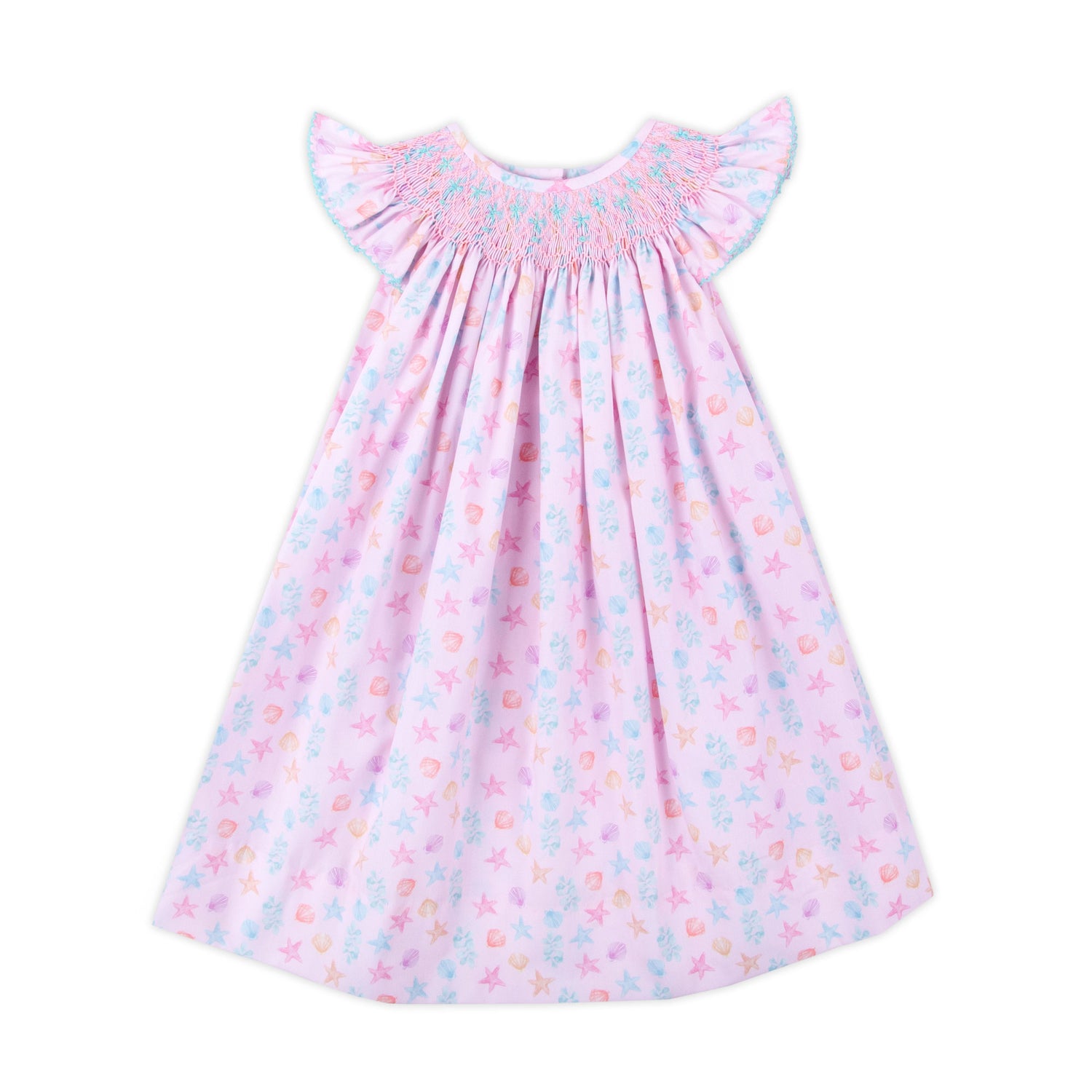 Seashell Seashore Smocked Pink Angel Sleeve Dress