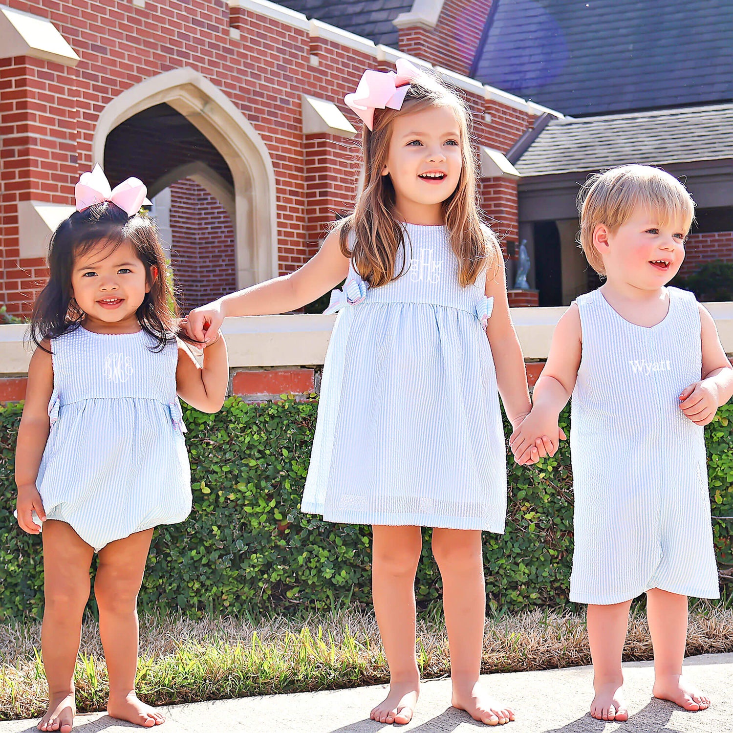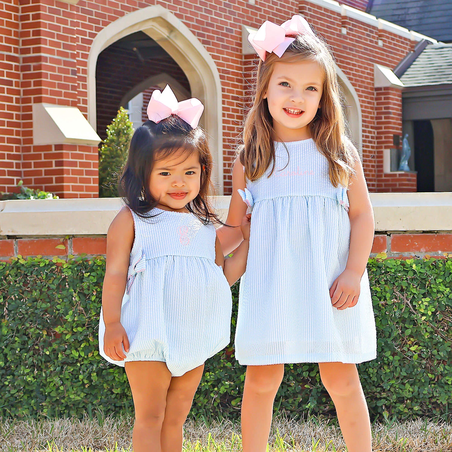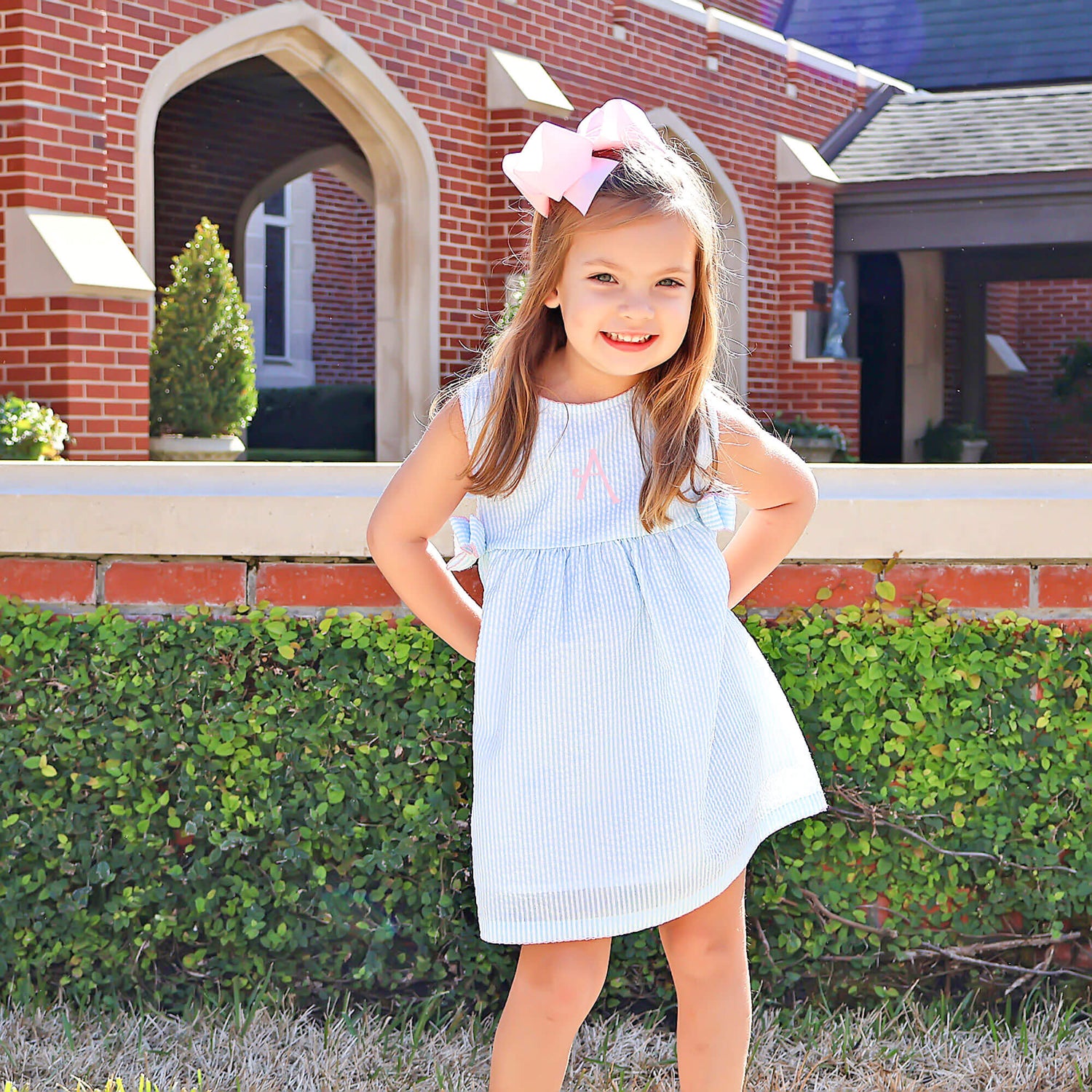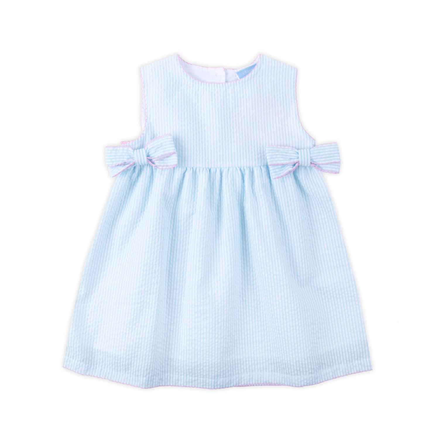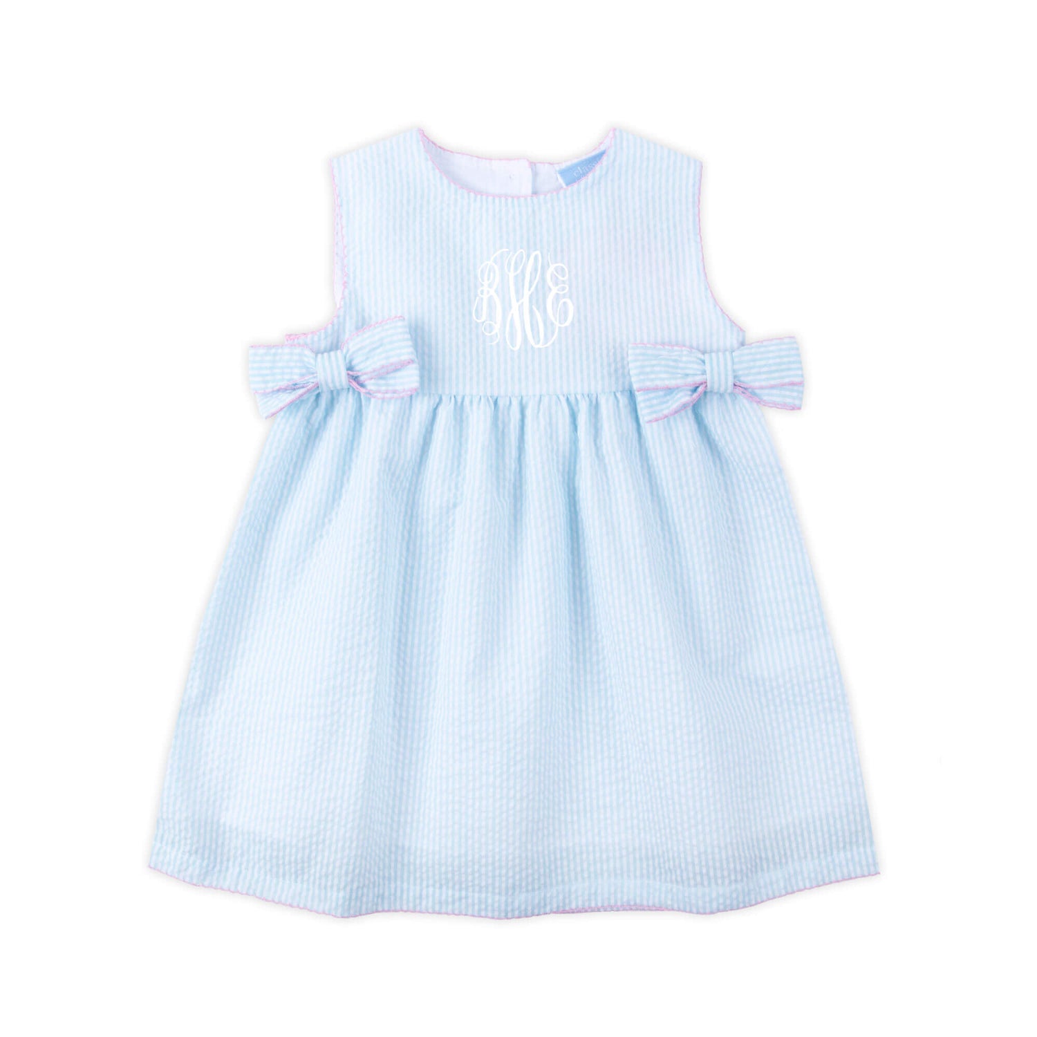 This Turquoise Stripe Ellie Dress is full of sweetness and charm! This Ellie style dress features playful turquoise stripes, dainty pink picot trim, and the cutest side bows, making it a must-have for twirling through the season. Add a monogram to make it extra special!