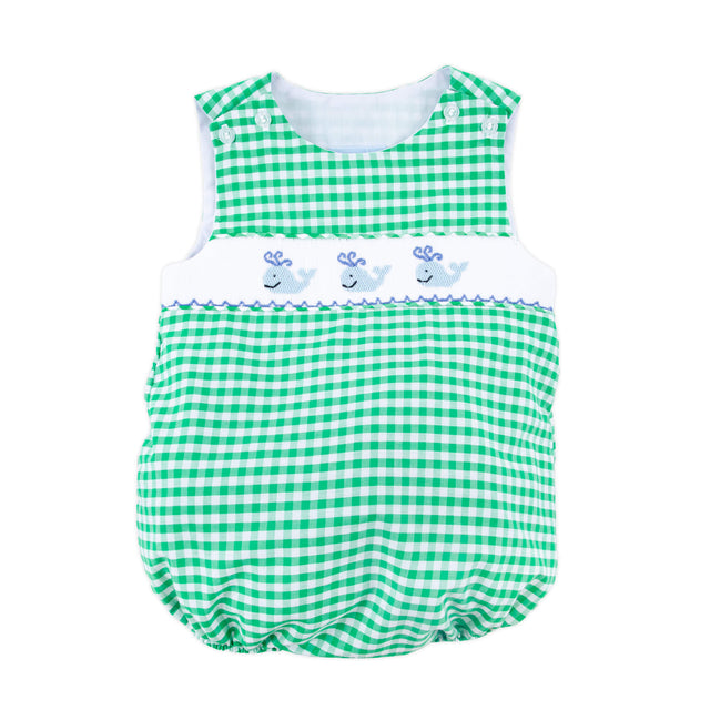 Whale Smocked Green Gingham Sun Bubble