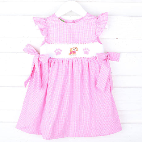 Puppy Patrol Pink Gingham Smocked Beverly Dress