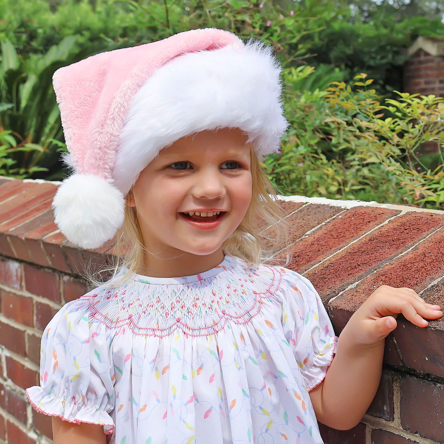 Get ready to celebrate the holidays in style with our Christmas Lights White Print Smocked Bloomer Set. This delightful set is adorned with a charming and festive Christmas lights print. The classic top features hand-smocking and bishop sleeves with green picot trim, making it a perfect choice for the season!
