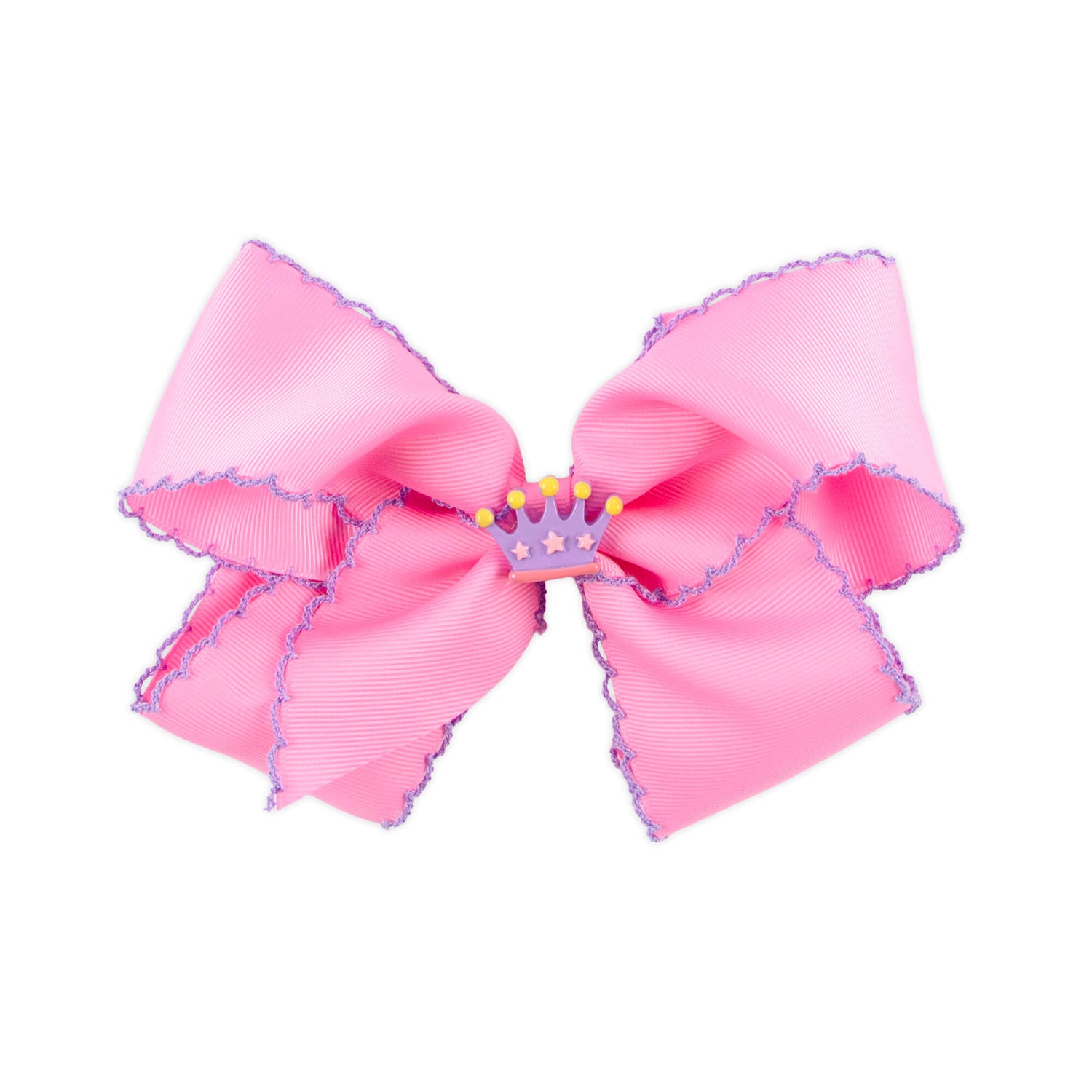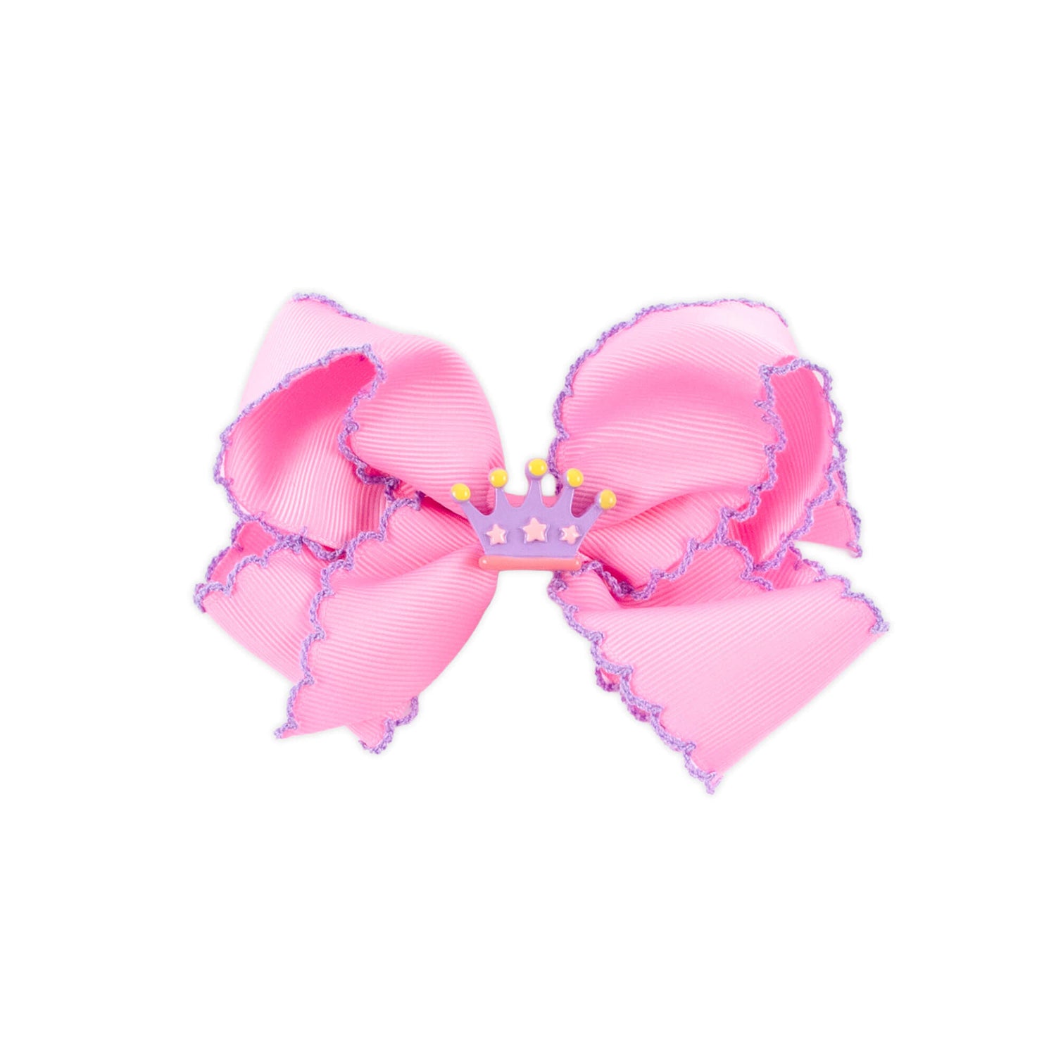 Complete your look with this fun Birthday Crown Charm Moonstitch Hair Bow! You'll be ready for a day of fun. Not only does it feature a beautiful moonstitch edge, but it also has a crown charm, adding a sweet touch to your outfit.