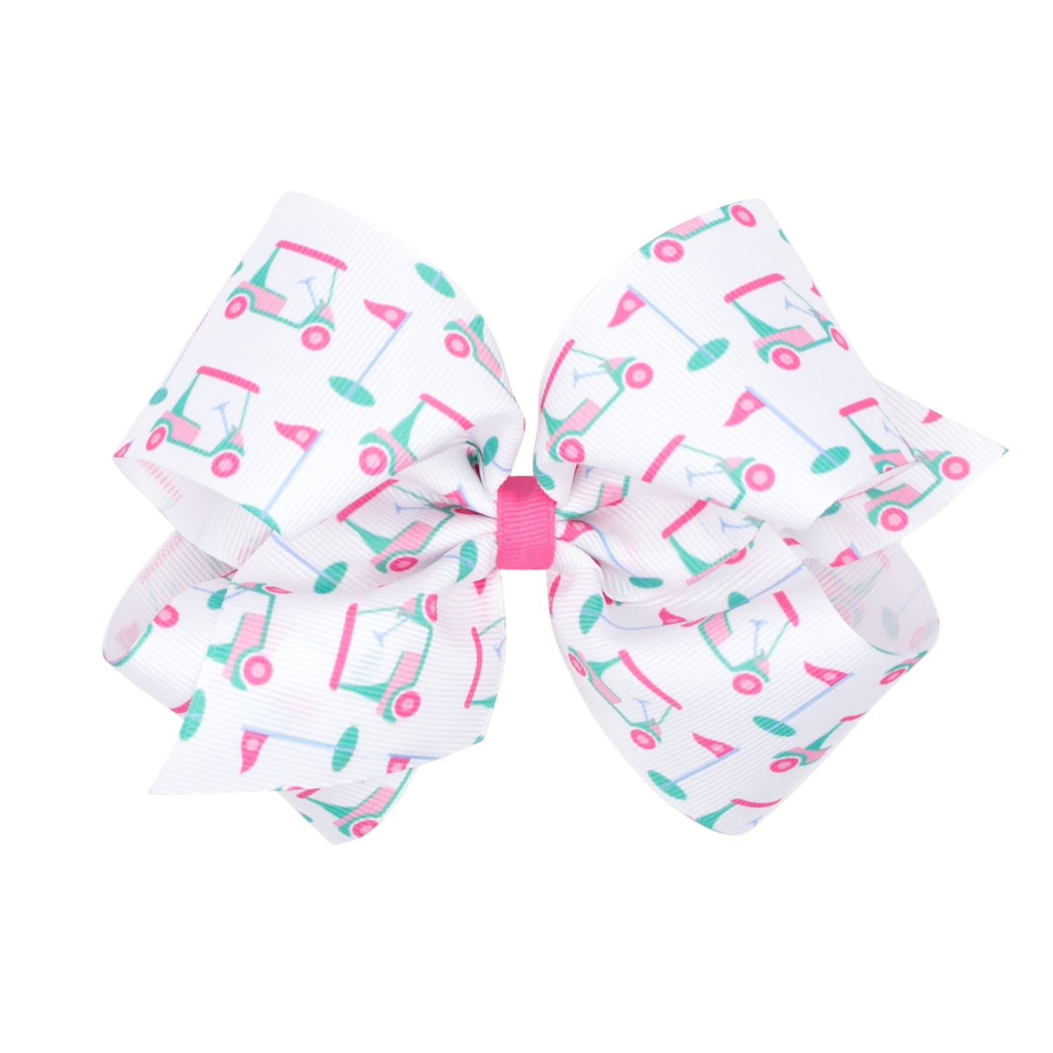 This Golf Print Grosgrain Bow is the perfect hair accessory for your little girl, featuring a charming pink golf scene print. This bow is sure to stay in her hair all day with our patented WeeStay™ no-slip hair clip.