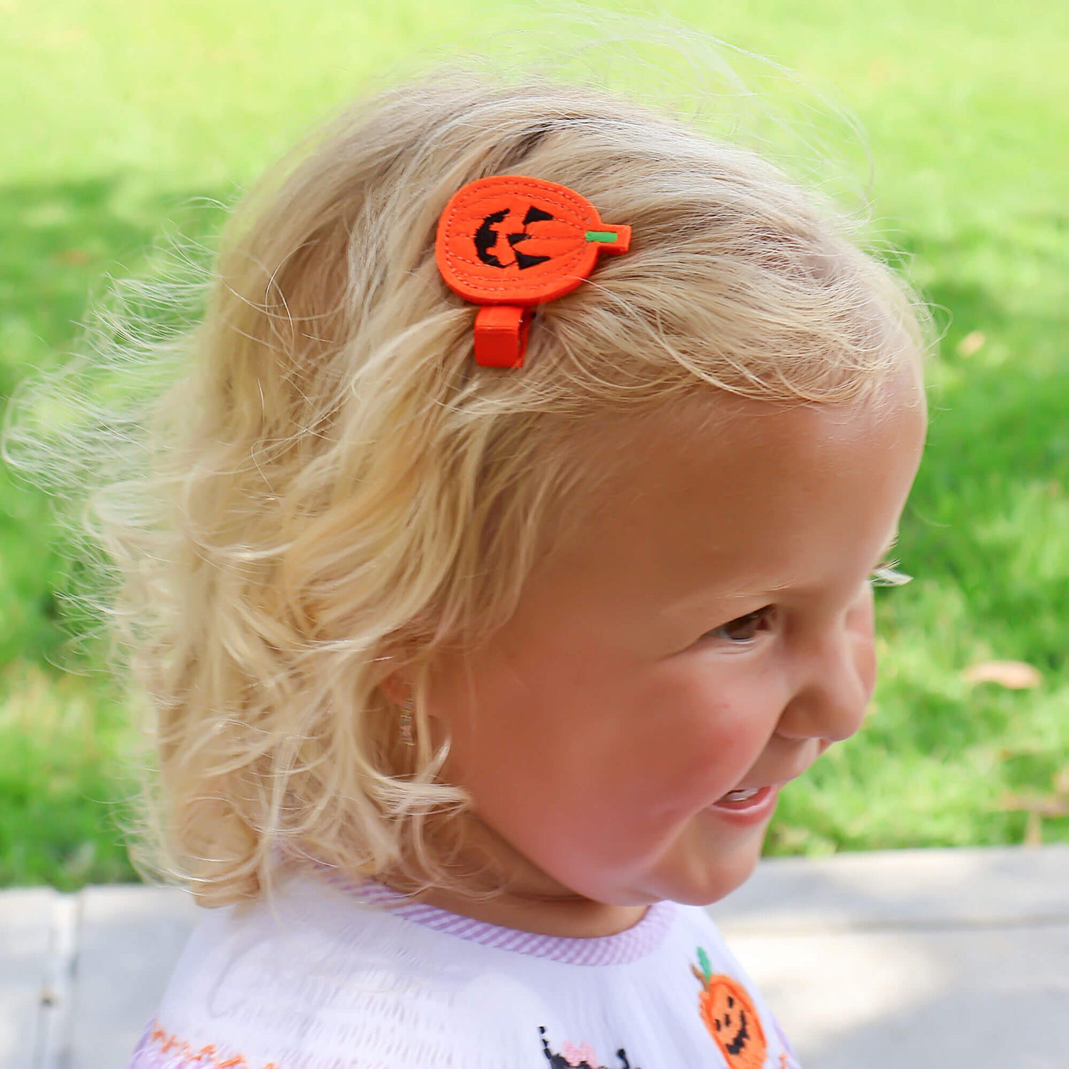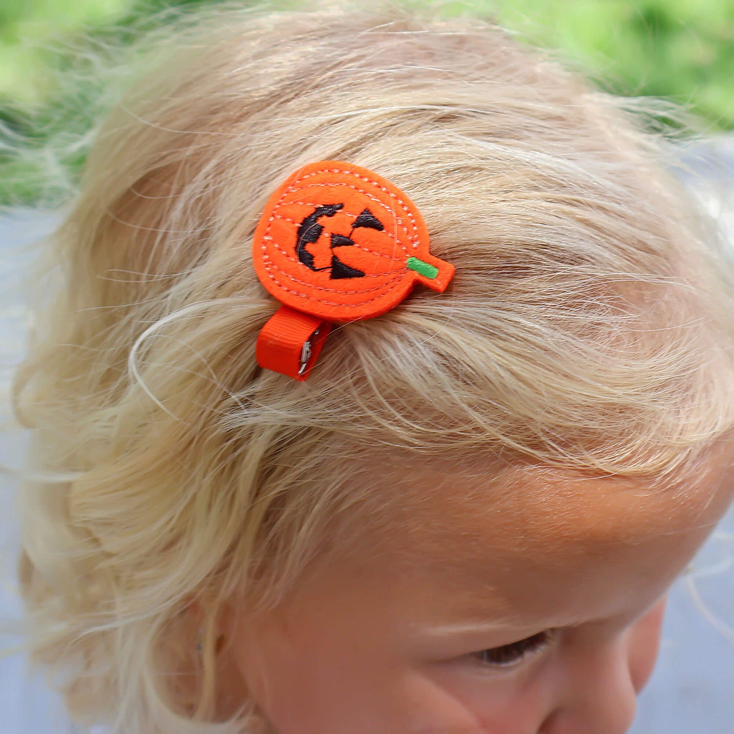 The costume isn't complete without a hair clip! Your little one will look adorable with our Jack O' Lantern Felt Hair Clip.