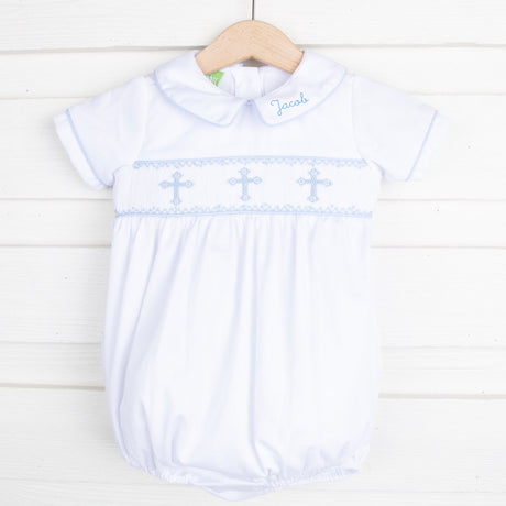 $44.99Unit price /Unavailable in this combinationCross Smocked Light Blue Boy Bubble