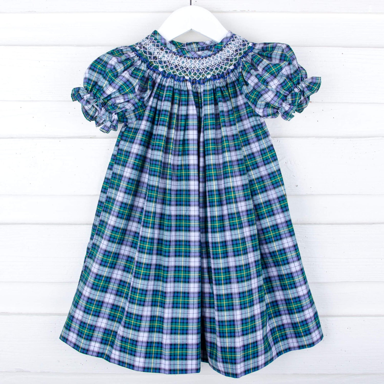 Brighton Plaid Bishop Geometric Smocked Bishop Dress