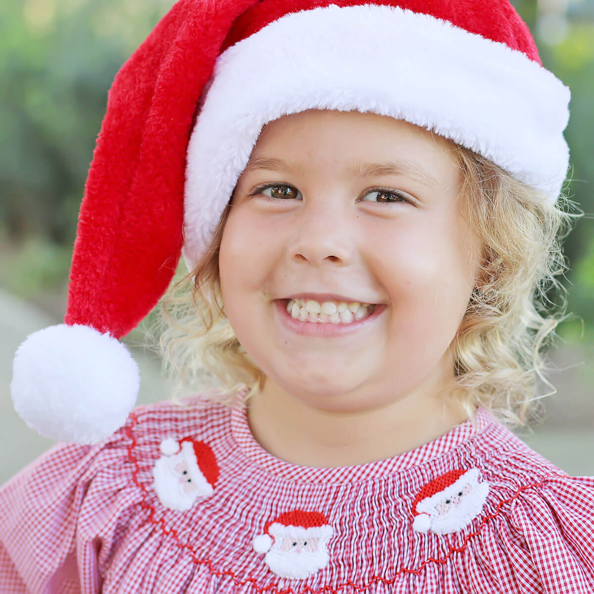Sleigh bells are ringing! Our Santa's Favorite Smocked Long Sleeve Dress is here to spread holiday cheer. This charming red gingham dress features adorable smocked Santas across the neckline, making it perfect for the most wonderful time of the year! Bishop long sleeves with red picot trim add an extra touch of festive charm.