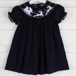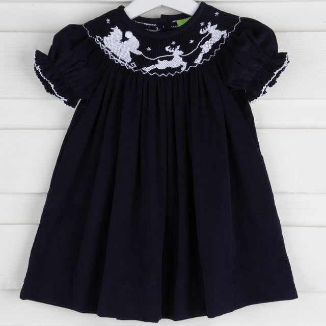 Santa Sleigh Smocked Bishop Navy Corduroy