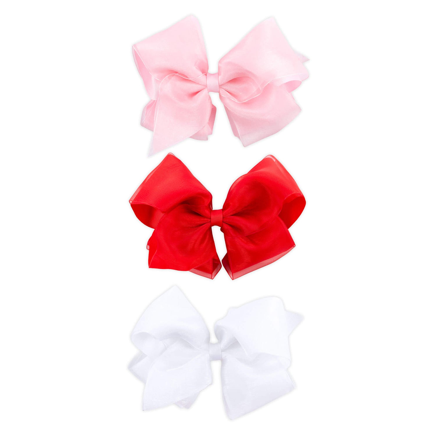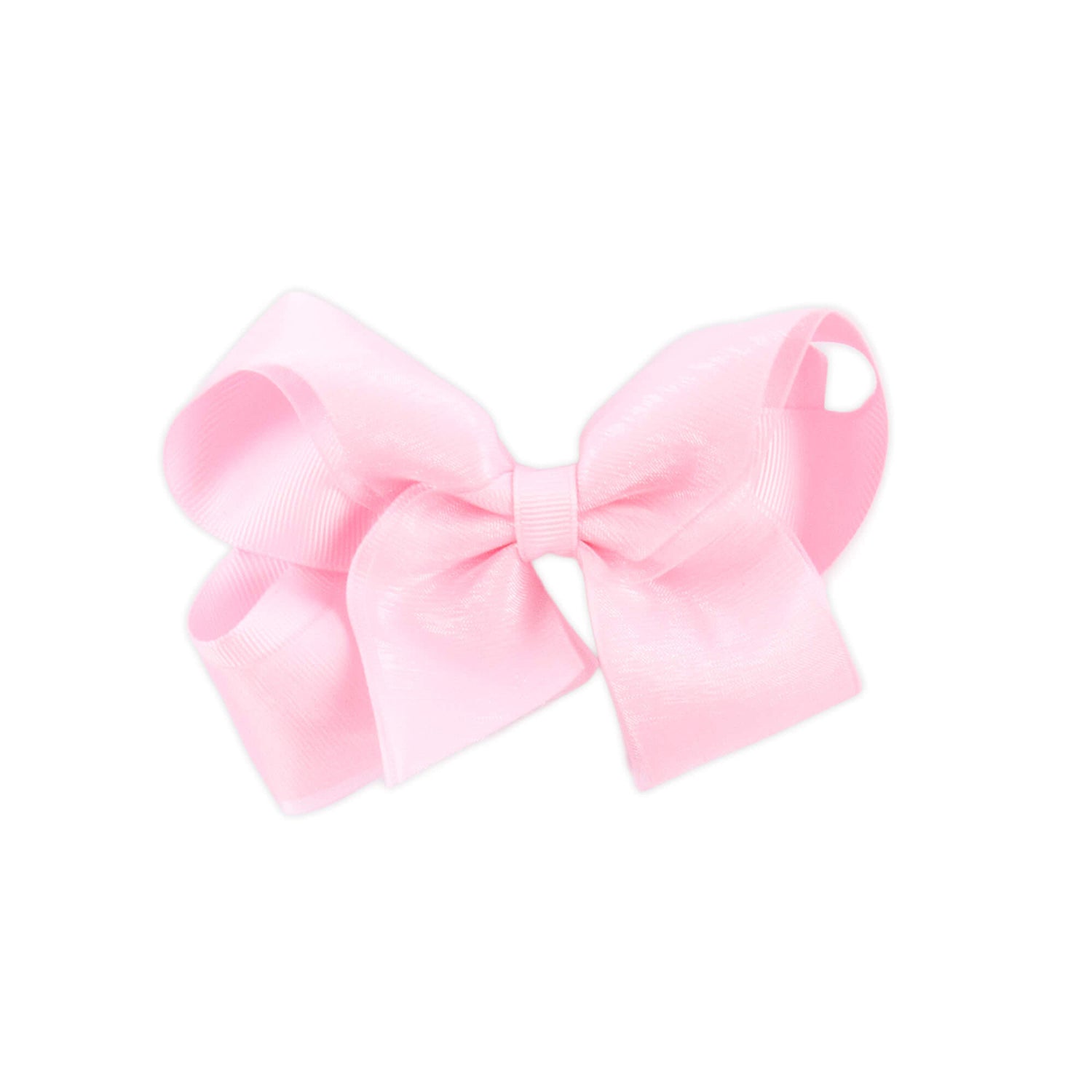This classic organza overlay bow is a fancy step up from the typical grosgrain ribbon bow! Sweet for special occasions or to match the perfect outfit. Alligator clip.