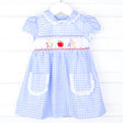 Your little one will enjoy singing her alphabet in our ABC Smocked Light Blue Gingham Cassie Dress. This Cassie-style dress features charming smocked details including an apple, colorful numbers, and letters. Complete with an adorable collar and front pockets, it's perfect for any day of learning and play.