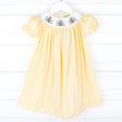 Bzzz, bzzz! Get ready for buzzing adventures with our Bee Smocked Yellow Gingham Bishop Dress. Designed in cheerful yellow with polka dots, this dress features adorable smocked bees and bishop-style sleeves, making it an irresistibly cute choice.