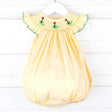 Make a stylish statement on a summer day at the course with our Golf Pin Yellow Gingham Smocked Bubble! This yellow gingham bubble features charming hand-smocked golf pins, complemented by adorable flutter sleeves with green picot trim. Complete with snaps in stride, it's both stylish and practical for a day of summer fun.