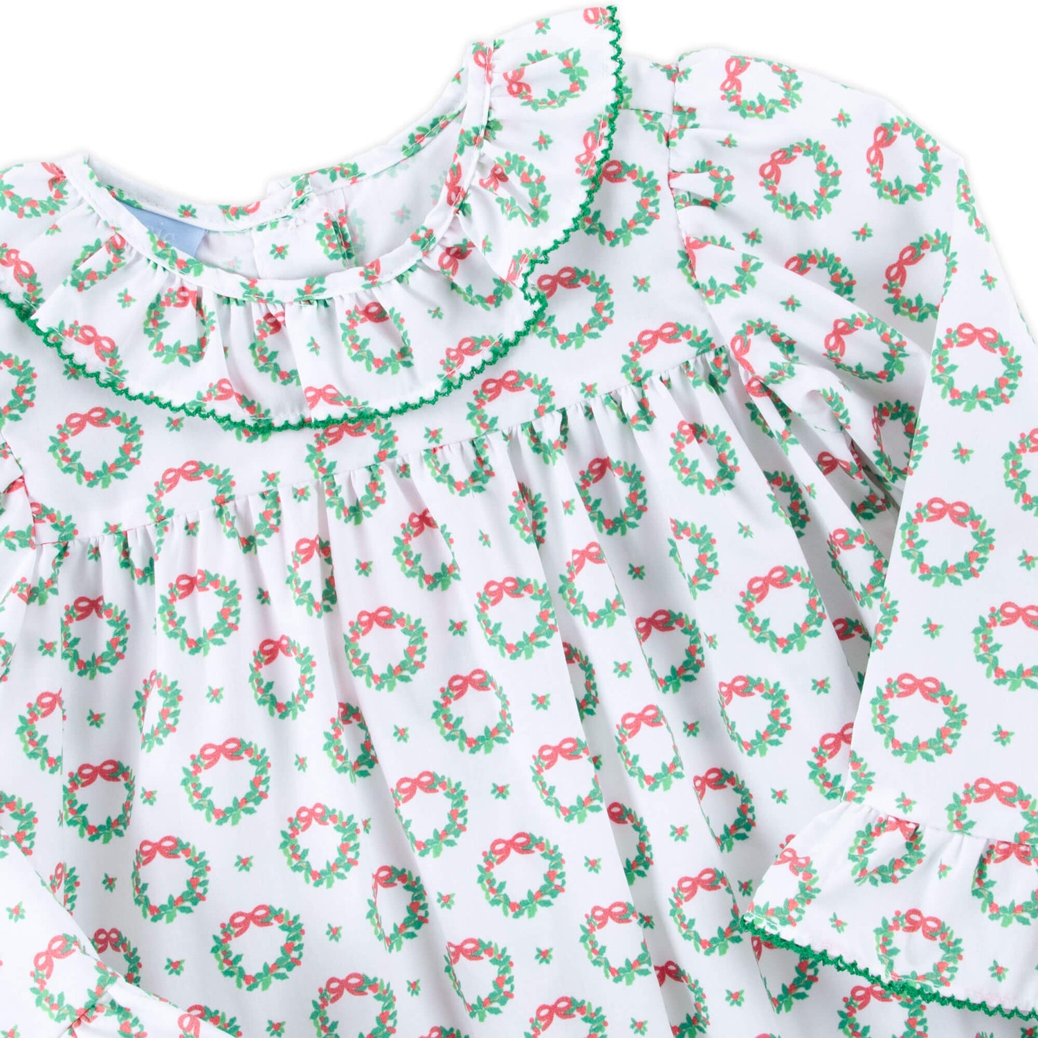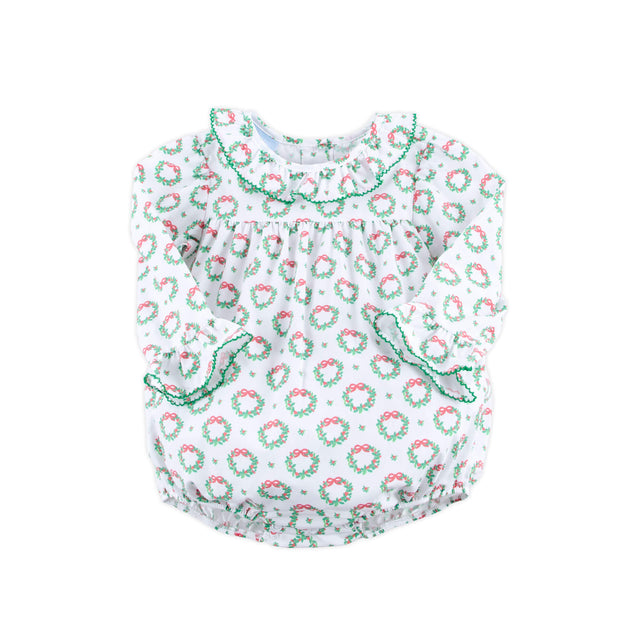 Holiday Wreath White Print Ruffle Collared Bubble