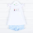 Is your little girl a big fan of these Ice Princess characters? She will adore our delightful ice princess short set! The white knit top features a hand-smocked ice princess design. The set includes light blue gingham shorts. Perfect for playtime fun, comfort, and cuteness!