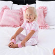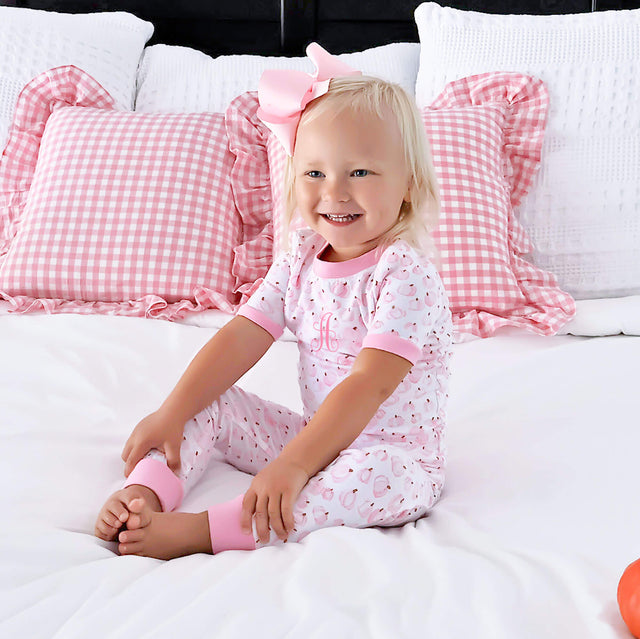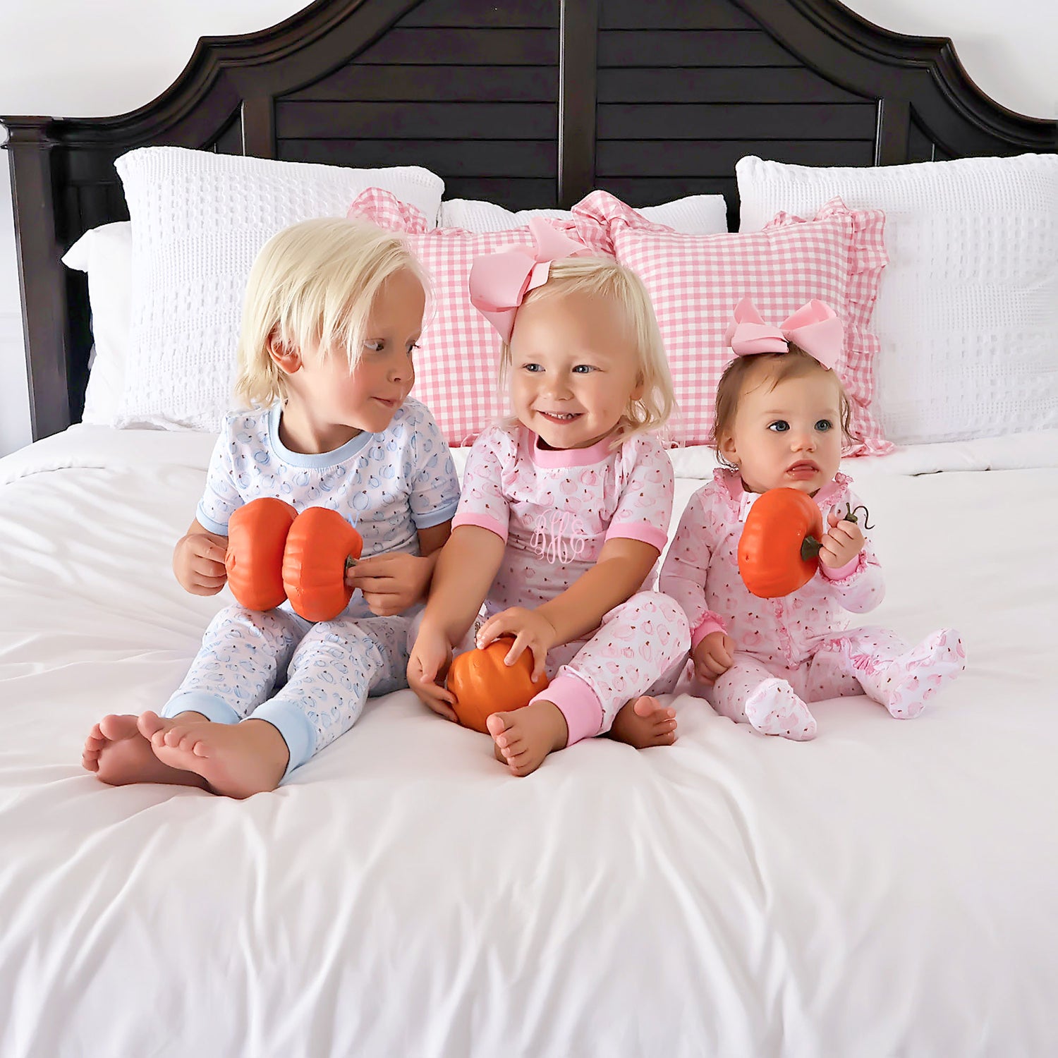 Your little one will be dreaming of the pumpkin patch in our Little Pumpkin Patch Pink Pajamas. These are the softest and most comfortable PJs! The short-sleeve pajama top features a custom pink pumpkin print and is coordinated with matching pajama bottoms. Add a monogram for a personalized touch!