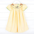 Fall season is here, and your little duckling will look adorable in this Mallard Smocked Yellow Gingham Bishop Dress. This charming dress features yellow gingham fabric, smocked mallard ducks, and bishop-style sleeves. It's the perfect outfit for duck watching at the park or leisurely park walks.