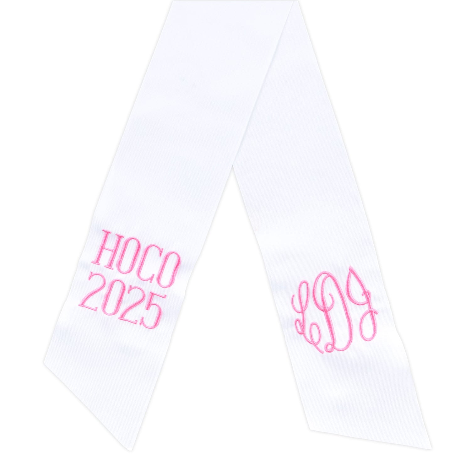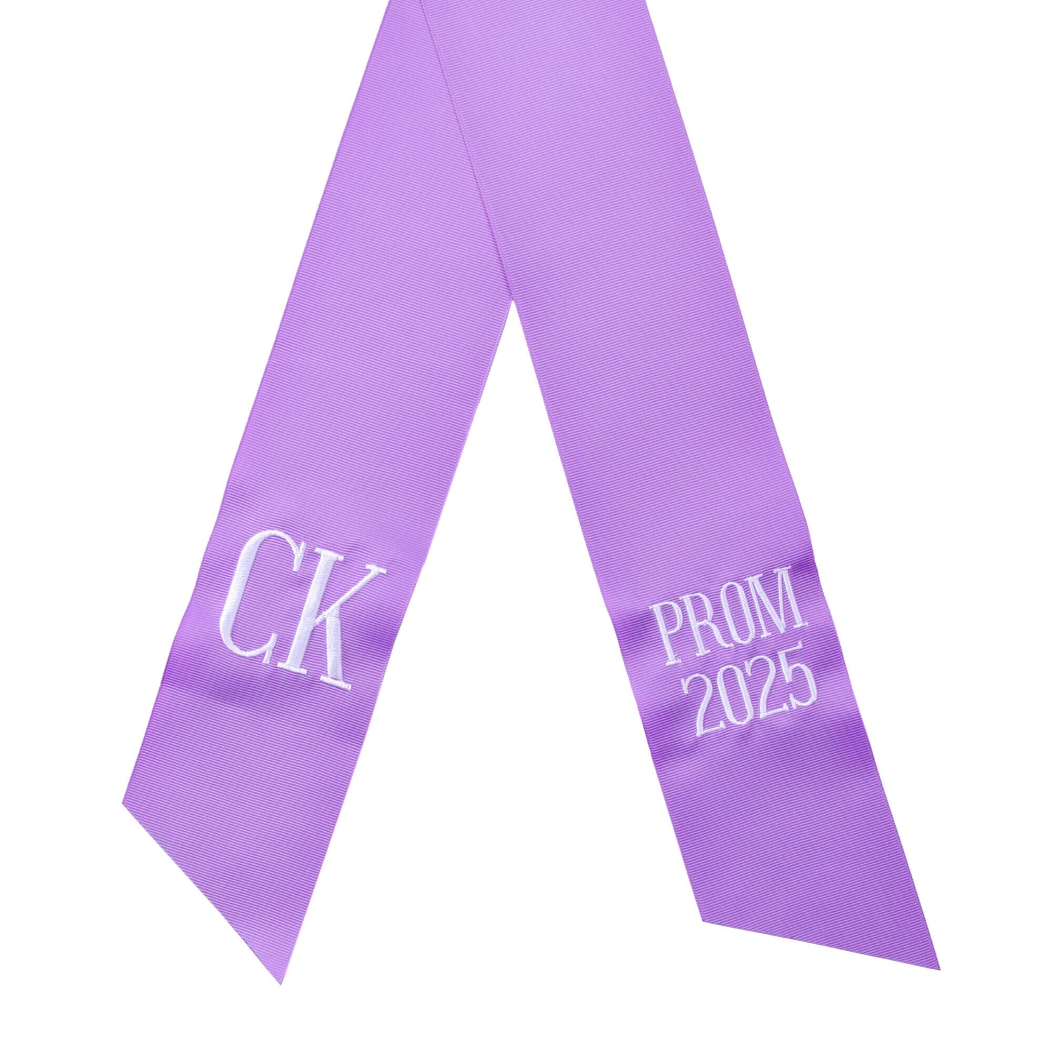 Choose from 3" or 4" width grosgrain ribbon and the style of your choice for the tail of the bow opposite your monogram: Blank, HOCO, PROM or Winter Formal. Total ribbon length is approximately 60".